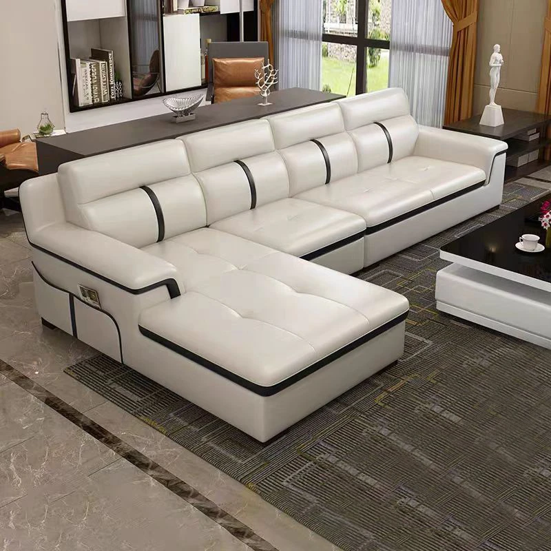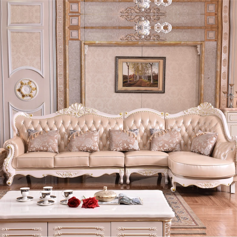 カフニのラグジュアリー本革ソファ - ヴィラや豪邸にぴったりの大空間向け、エレガントなイタリアンアーチデザインのコーナーソファセット!快適さとスタイルを兼ね備えたリビングの中心を演出します。