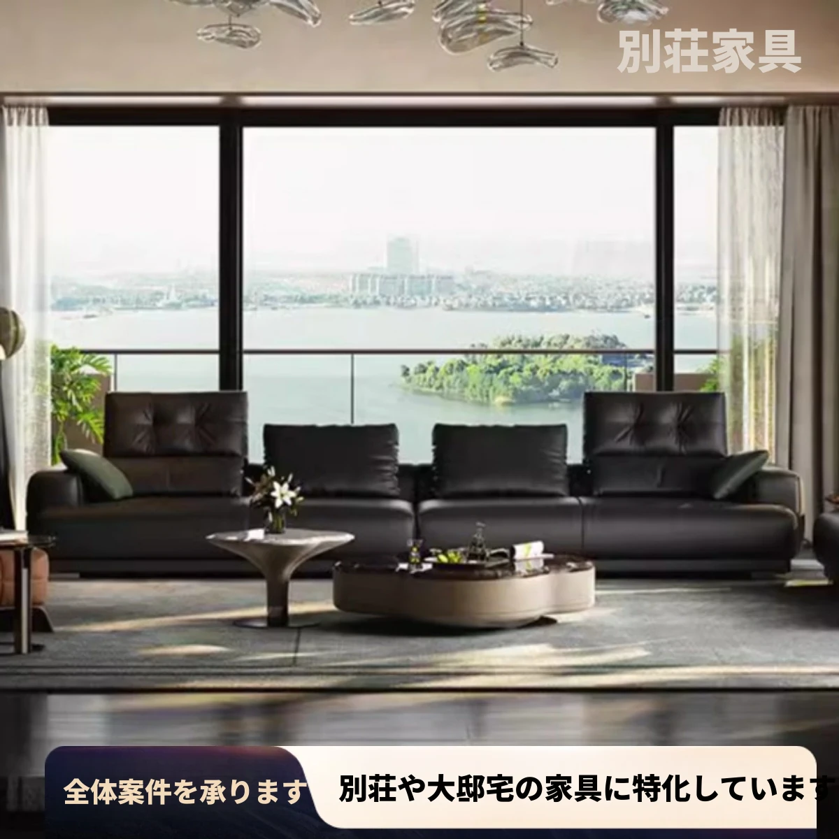 黒の本革ソファ イタリアンミニマルデザイン 大平面リビング用 調整可能な機能付き 4人掛けソファで、スタイリッシュな空間を演出!快適さと洗練を兼ね備えた一品です。