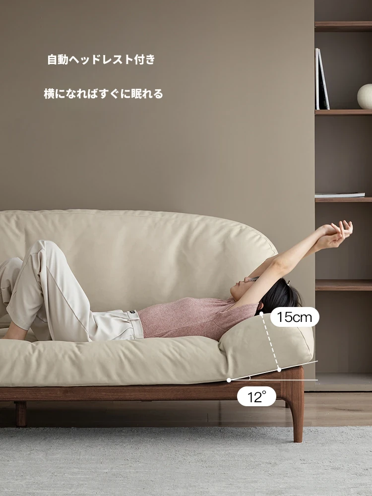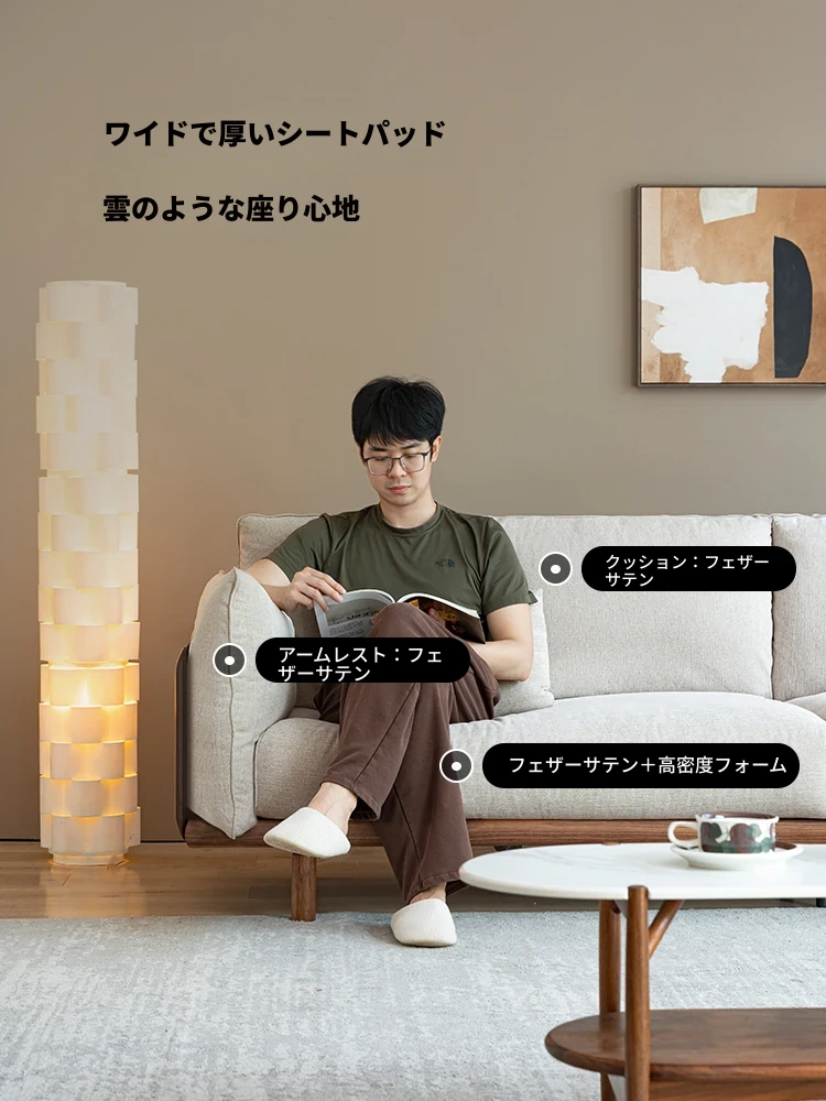 北欧風・日本式・雲のようなデザインの無垢材ソファ バクスター 小型リビングに最適!クリーミーなナチュラルウッド風の布製ソファは、取り外し可能でお手入れ簡単!快適な空間をあなたの家に。