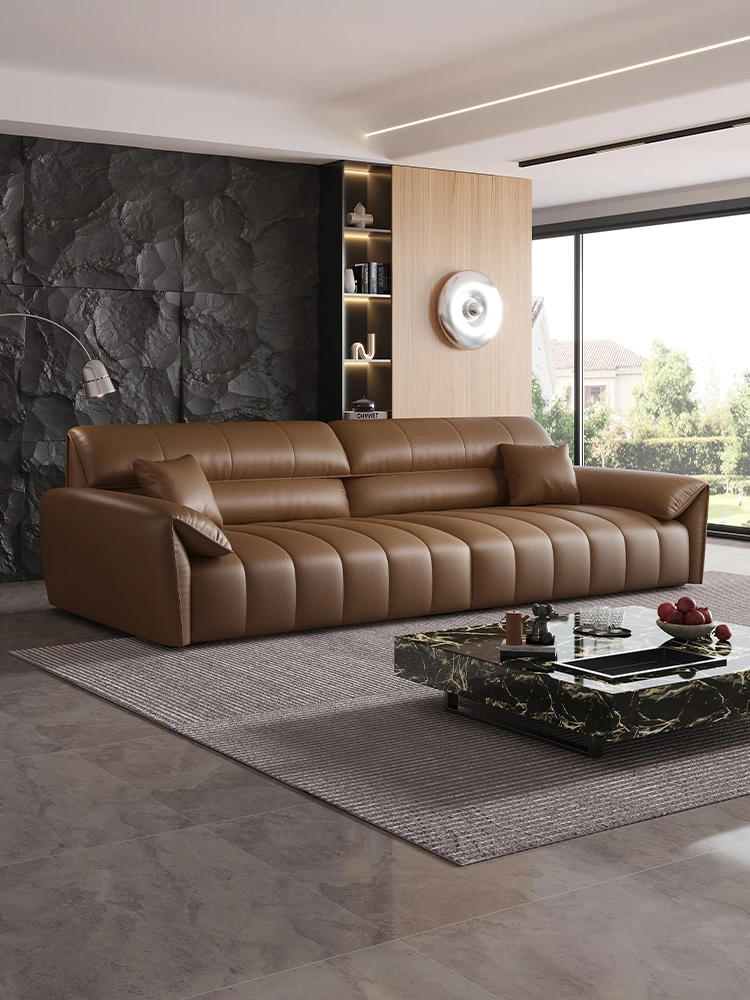 カフニ高級イタリアン本革ソファ - 一級牛革使用、ヴィラや大平面に最適な現代的ラグジュアリーアーチ型ソファ。おしゃれで快適なリビング空間を演出します!