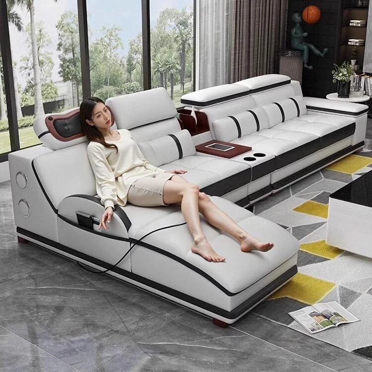 本革製モダンミニマリストソファ、機能的マッサージ付き、ラグジュアリーなイタリアントップレザー、小型リビングにも最適!2025年新作、快適なひとときをお届けします。