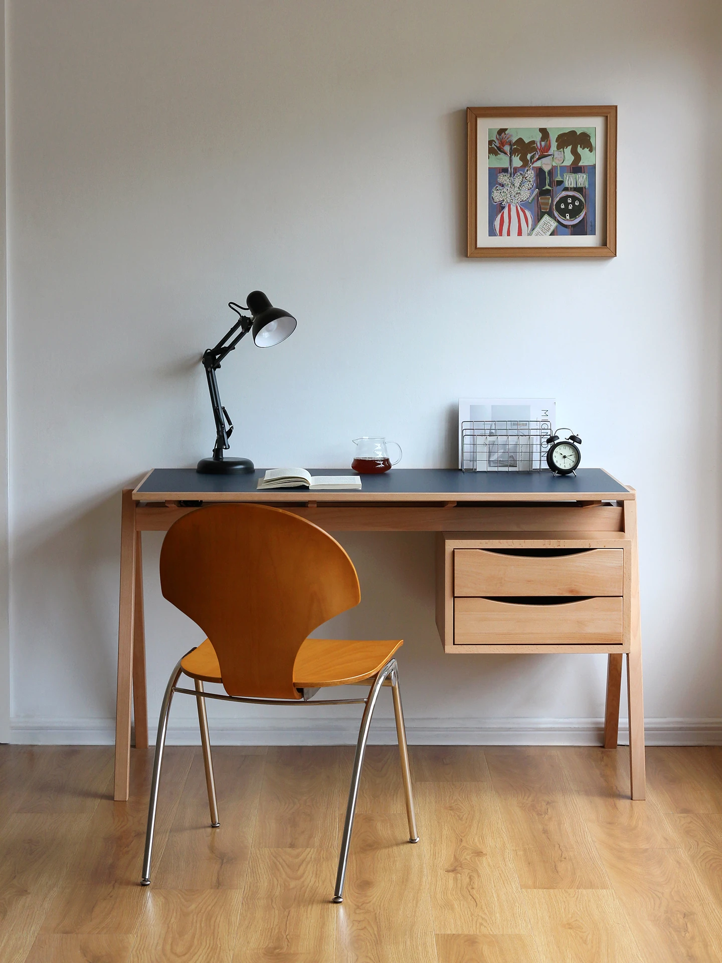 『号角屋 Daystakデスク』北欧スタイルの無垢材書斎デスク、便利な引き出し付き!小スペースにも最適なダイニングテーブル兼用のオフィス用コンピューターデスク。シンプルで洗練されたデザインで、快適な作業環境を提供します。