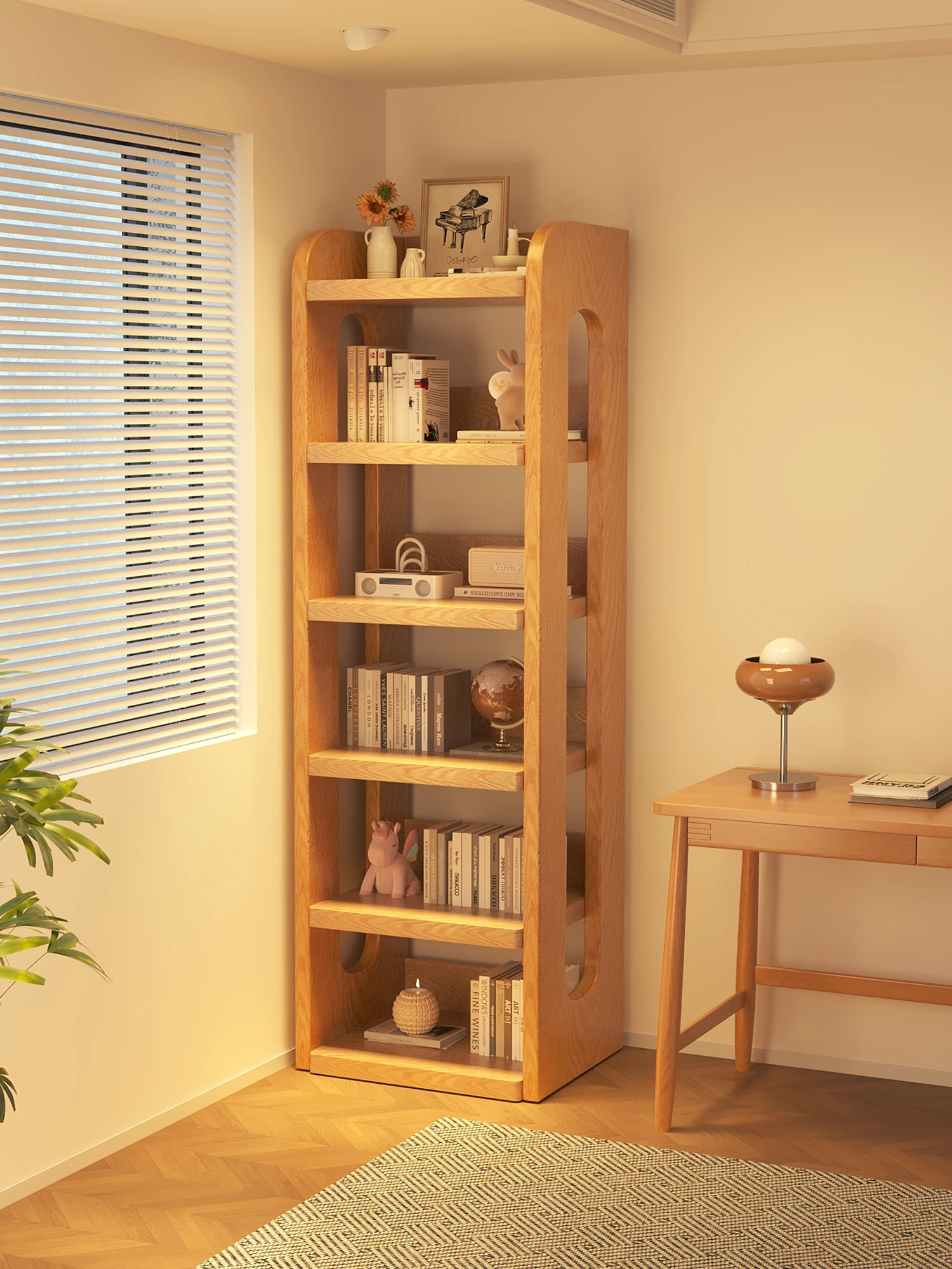 省スペース!実木製のフロア書棚・収納ラック - 壁に寄せて使えるコーナー収納キャビネット、学生・家庭用の子供向け書庫に最適!