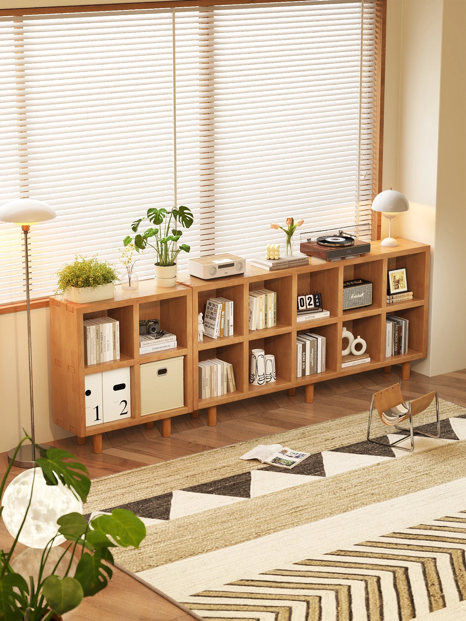 無垢材のグリッドキャビネット - 家庭用バルコニー収納ラック、床置きタイプの窓辺収納キャビネット。自由に組み合わせ可能な子供用読書ラックで、お部屋をおしゃれに整理整頓!
