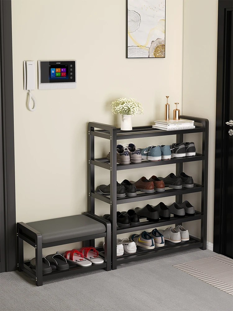 2023年新作!狭い玄関にもぴったりなスタイリッシュなシューズラック&ベンチ一体型!耐久性のあるステンレス製で、宿舎や小スペースに最適。おしゃれに靴を収納し、座るスペースも確保!