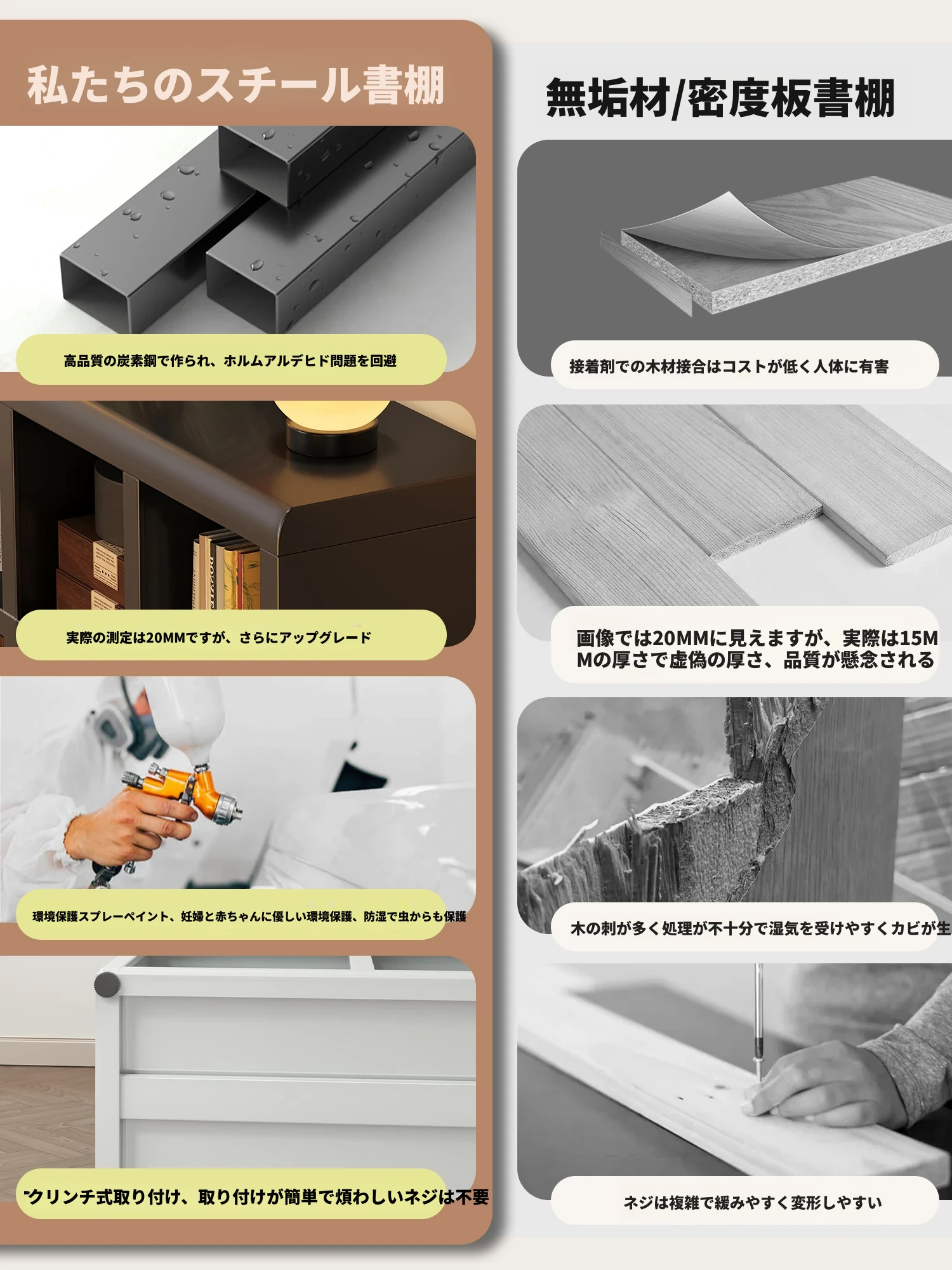 スチール製コーナーブックシェルフ - 省スペースで魅力的なディスプレイ!多層収納ラック、便利な収納ボックス、スタイリッシュな小型収納キャビネット。おしゃれで機能的な本棚で、あなたの空間を美しく整えましょう!