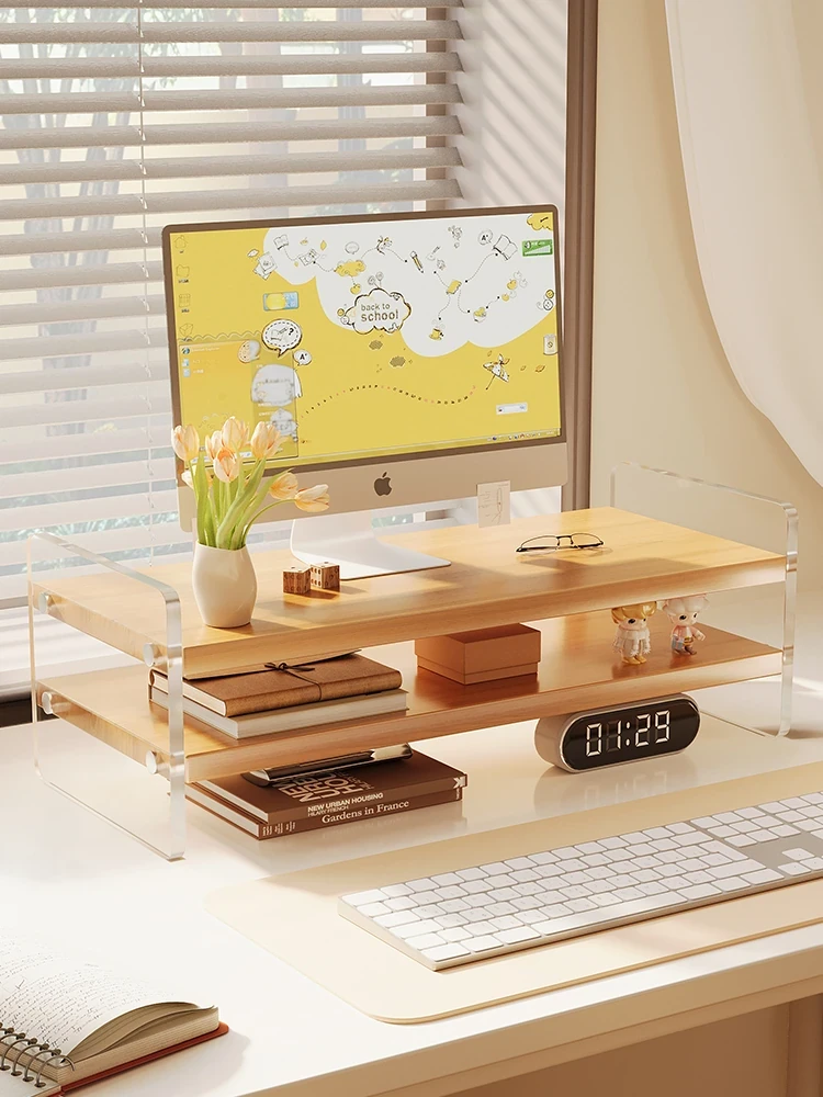 デスクトップパソコン用モニター台、スタイリッシュなアクリル製の高さ調整スタンド!快適な視線を確保し、作業効率をアップ!シンプルでおしゃれなデザインで、あなたのデスクをスマートに演出します。