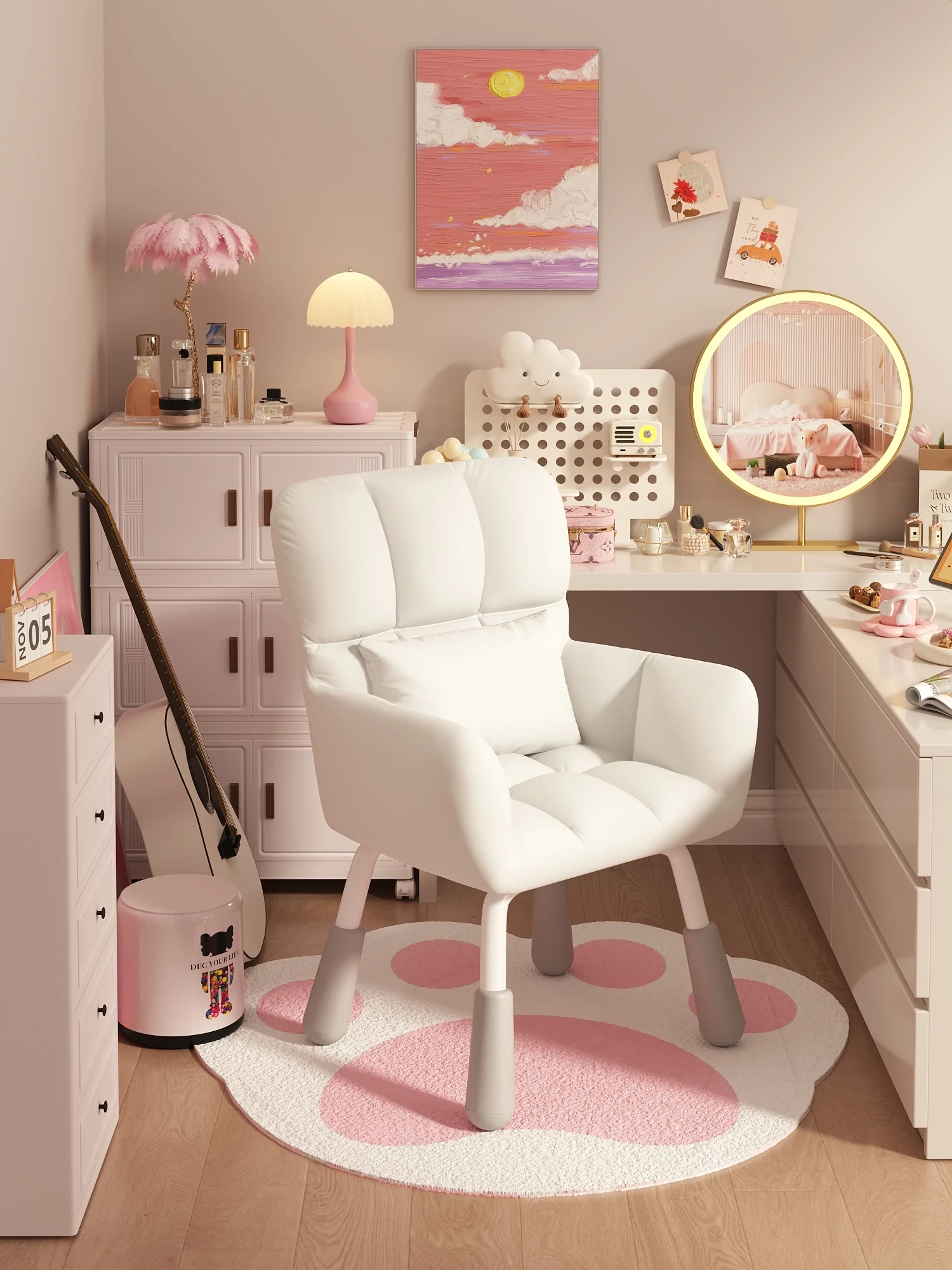 学生必見!大学生向けの快適なパソコンチェア - リクライニング機能付き、昇降可能で自宅学習やメイクにも最適なデザイン。女子の寝室にもぴったり!