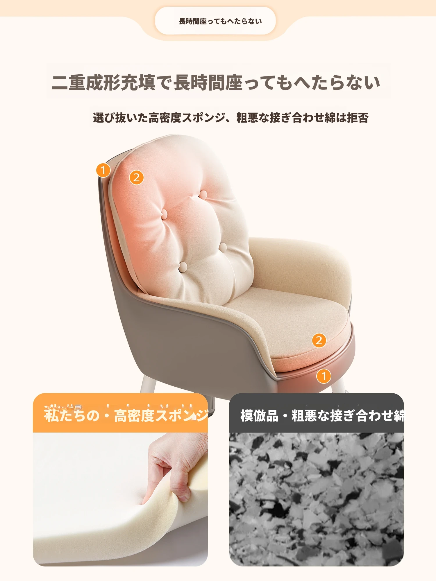 快適な座り心地!女子向けのリビングや寝室にぴったりの昇降式デスクチェア。勉強や化粧にも最適な、長時間座っても疲れにくい背もたれ付きの椅子。寮生活にも最適です!