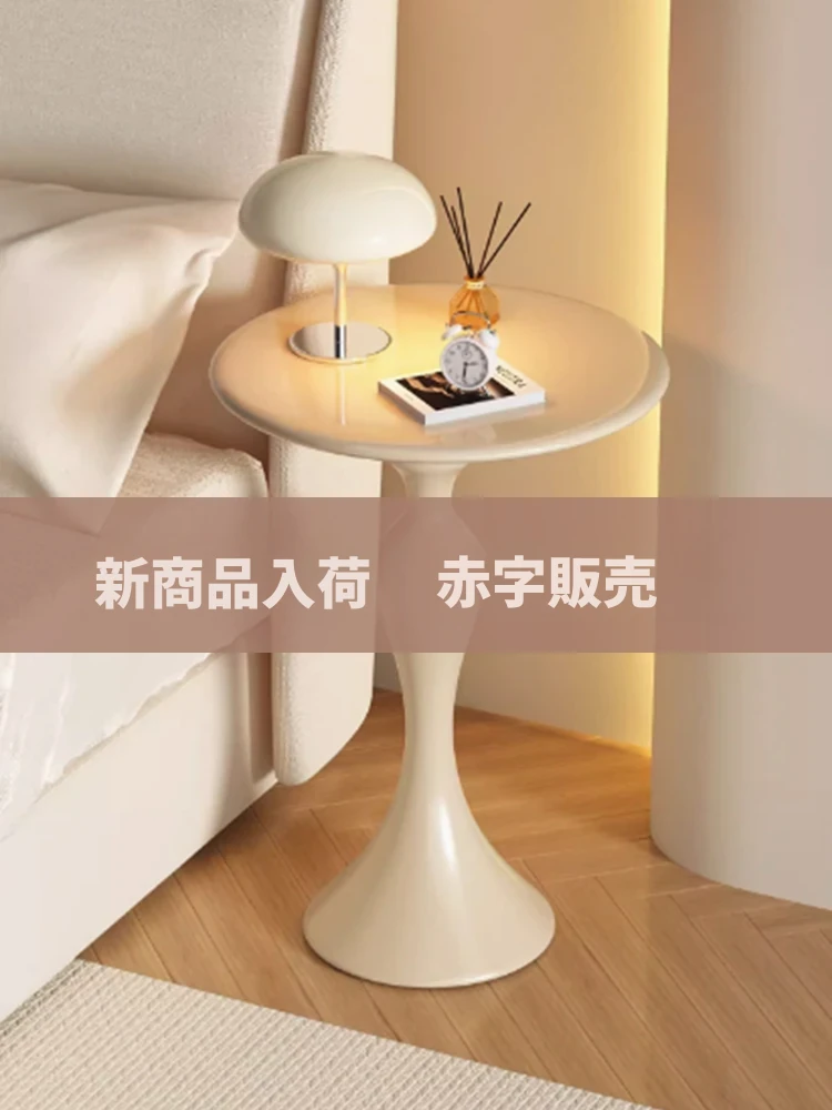 クリーム風モダンミニマリスト岩板ナイトスタンド - おしゃれで機能的なベッドサイドテーブル、小型収納に最適なクリエイティブなデザインで、寝室を一層魅力的に彩ります!