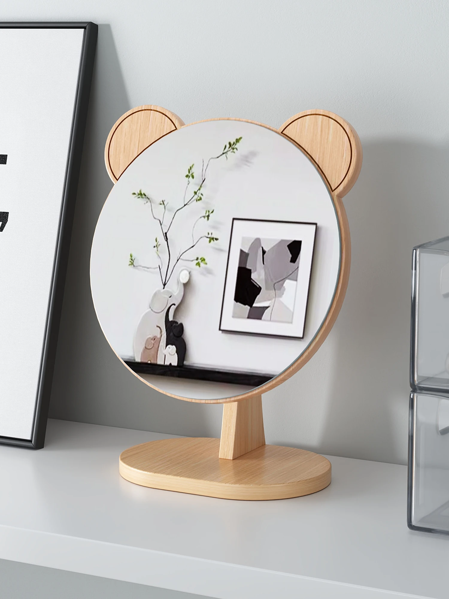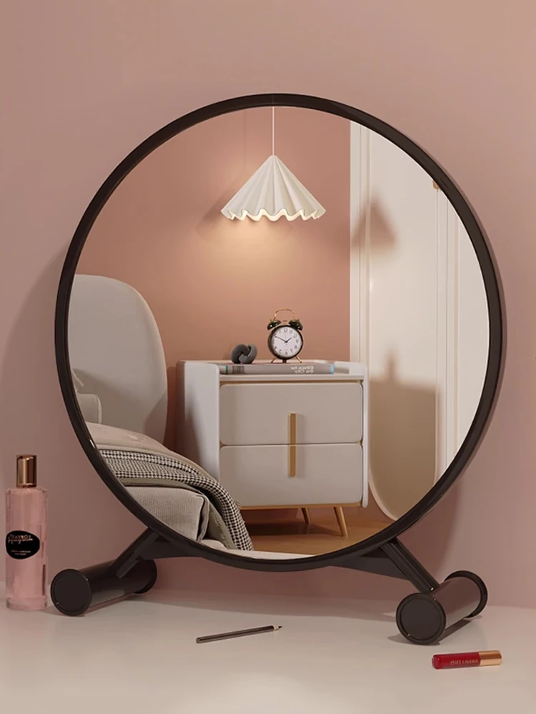 学生宿舍必备!可爱デザインの木製卓上鏡 - 高解像度でメイクも楽々!おしゃれな大サイズの円形鏡、寝室や家庭で大活躍!