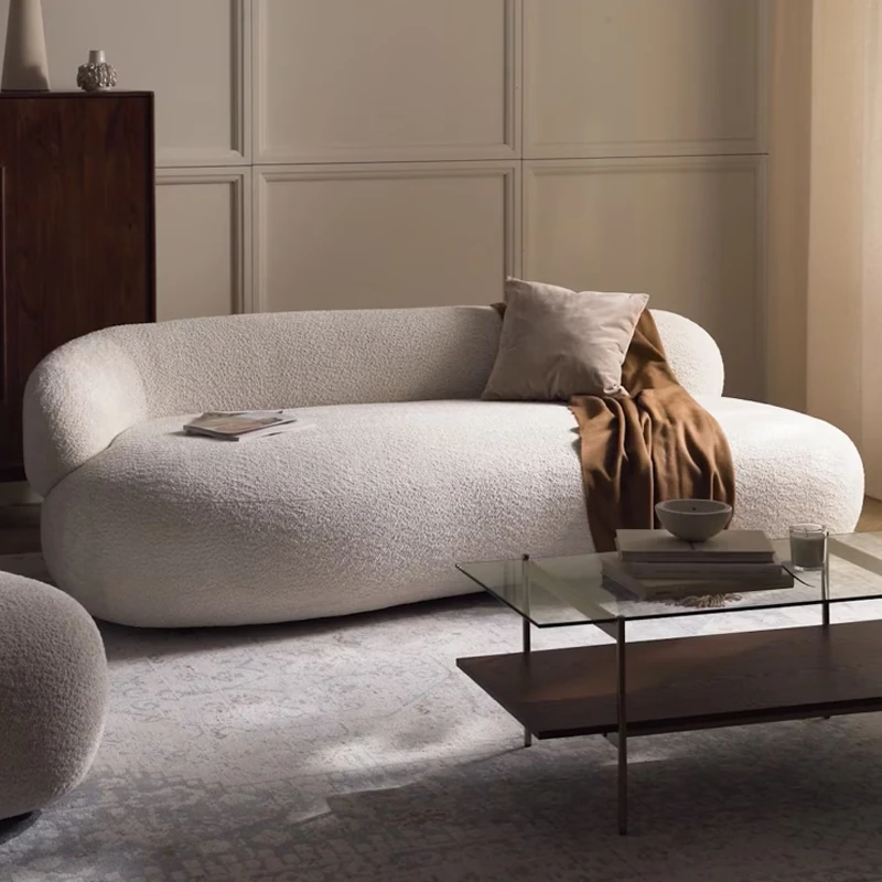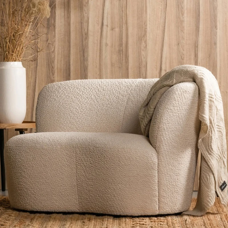 Nordic Creamy Lambswool Curved Lounge Chair - Stylish Italian-Inspired Accent Chair for Living Room, Hotel, and Relaxation Spaces - Cozy Fabric Recliner for Ultimate Comfort