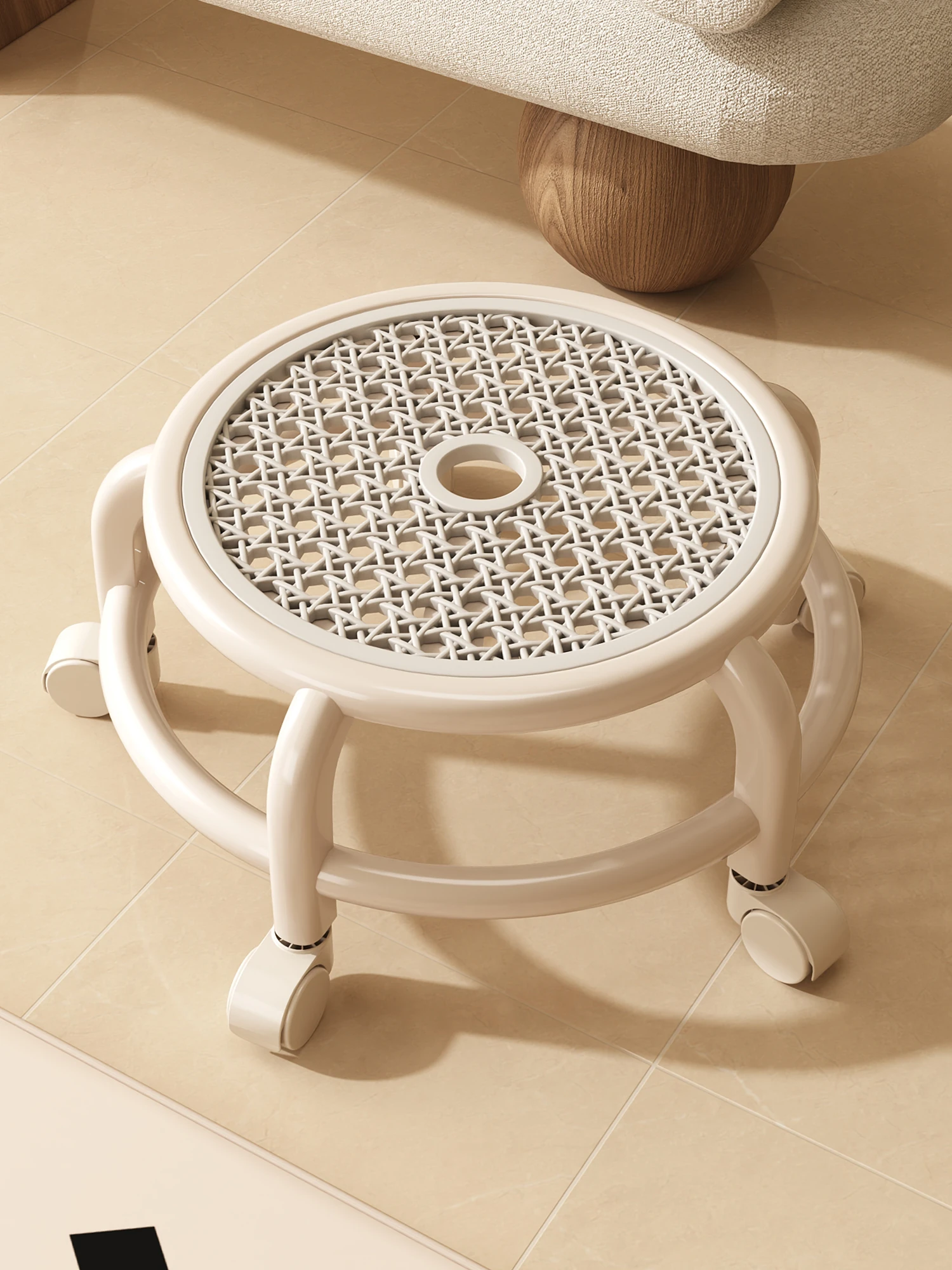 Multifunctional Rolling Stool with Backrest - Portable and Stylish Small Bench for Kids and Adults, Ideal for Home Use, Shoe Changing, and Relaxation