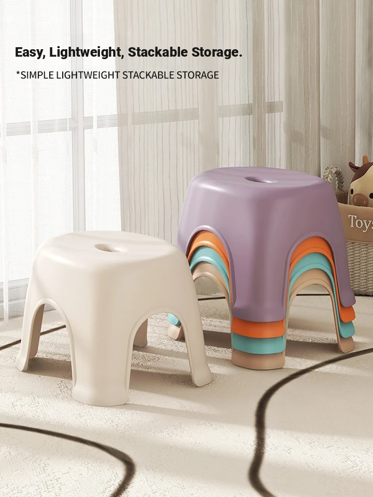 Thickened Stackable Plastic Stool - Round Design for Home Use, Child-Friendly Low Seat, Non-Slip Shoe Changing Bench, Minimalist Tea Table Stool