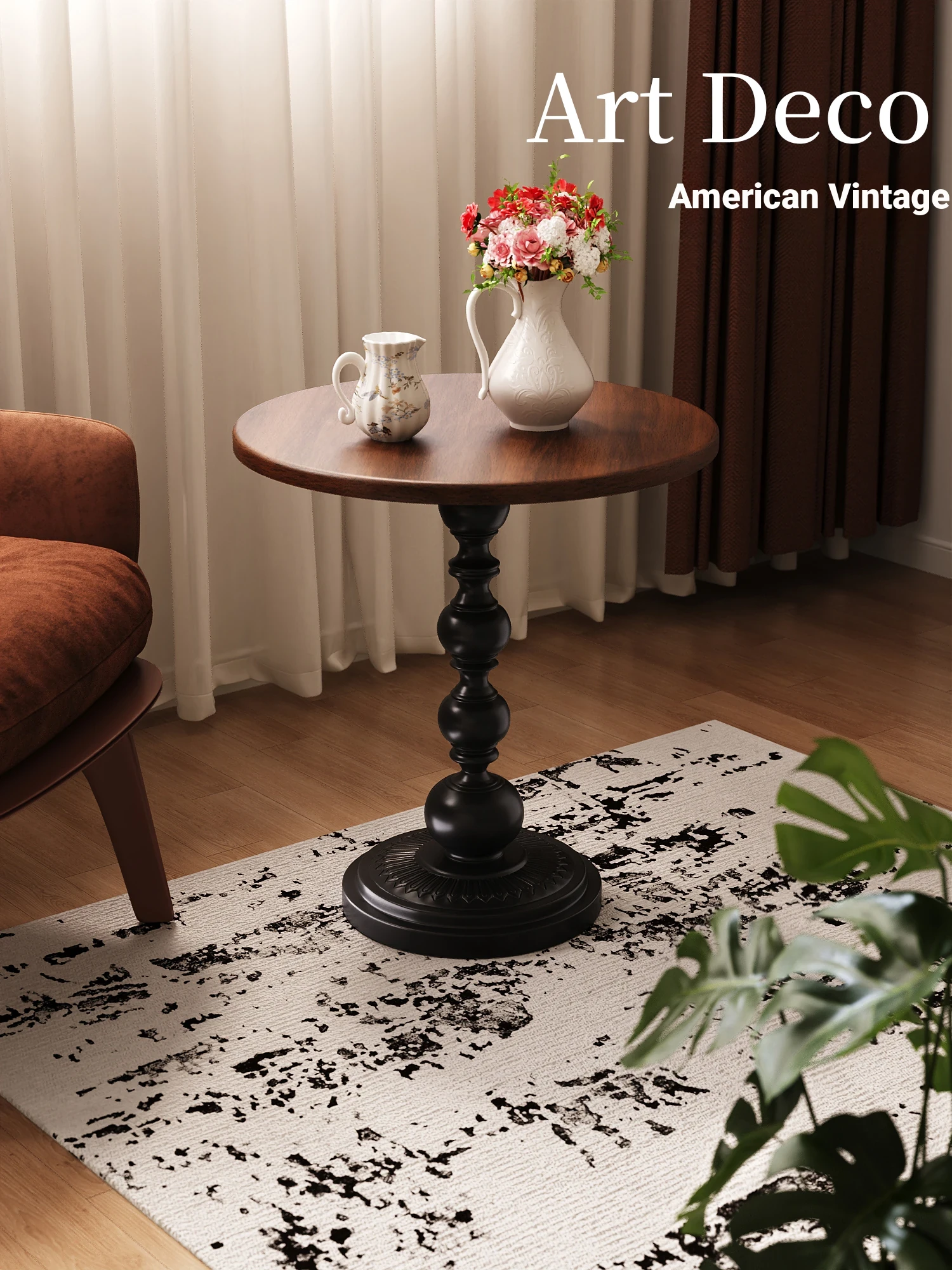 Modern Walnut Round Coffee Table – Minimalist Design for Small Spaces, Ideal as a Sofa Side Table or Vintage-Inspired Balcony Accent. Perfect for Cozy Living Rooms and Creative Home Decor!