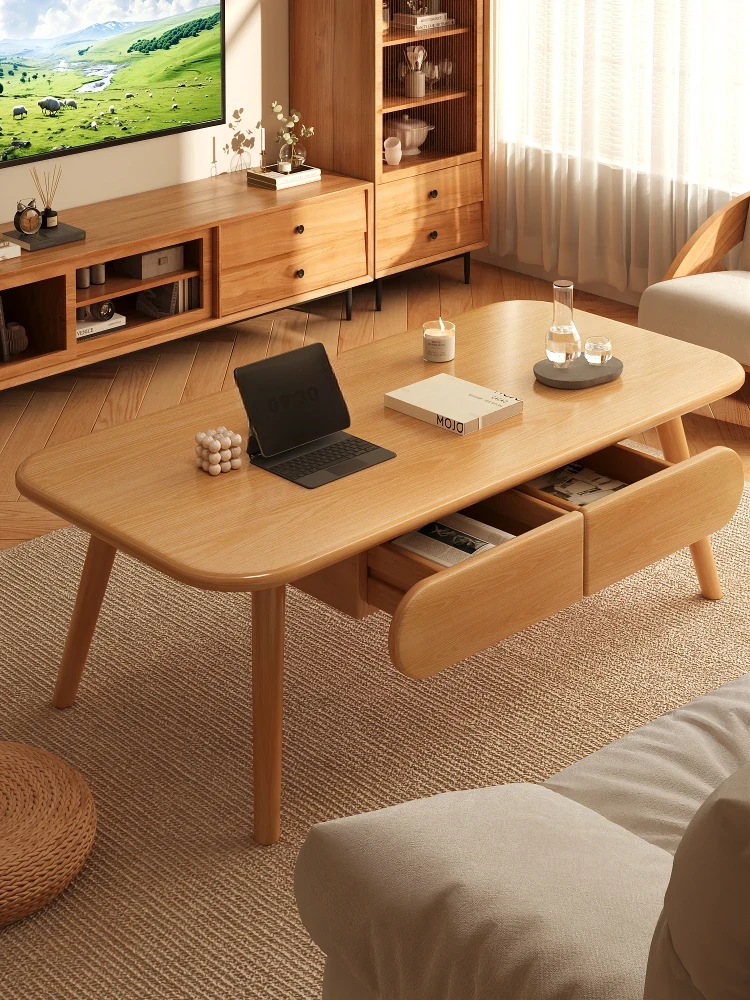 2025 New High-End Minimalist Solid Wood Coffee Table for Small Living Rooms - Elegant Natural Wood Design for Balcony and Home Use