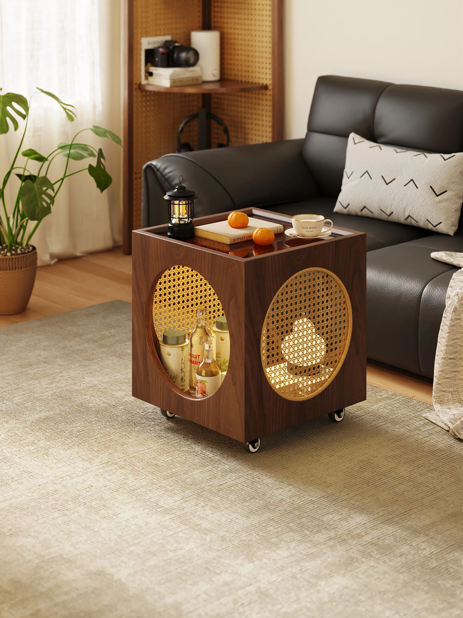 Solid Wood Side Table - Mobile Coffee Table for Living Room, Nightstand for Bedroom, Storage Rack, Stylish and Functional End Table