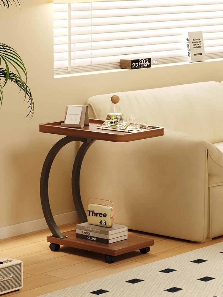 Modern Minimalist Side Table with Wheels - Stylish and Functional Tea Table and Storage Rack for Living Room, Perfect for Sofa Side Use.