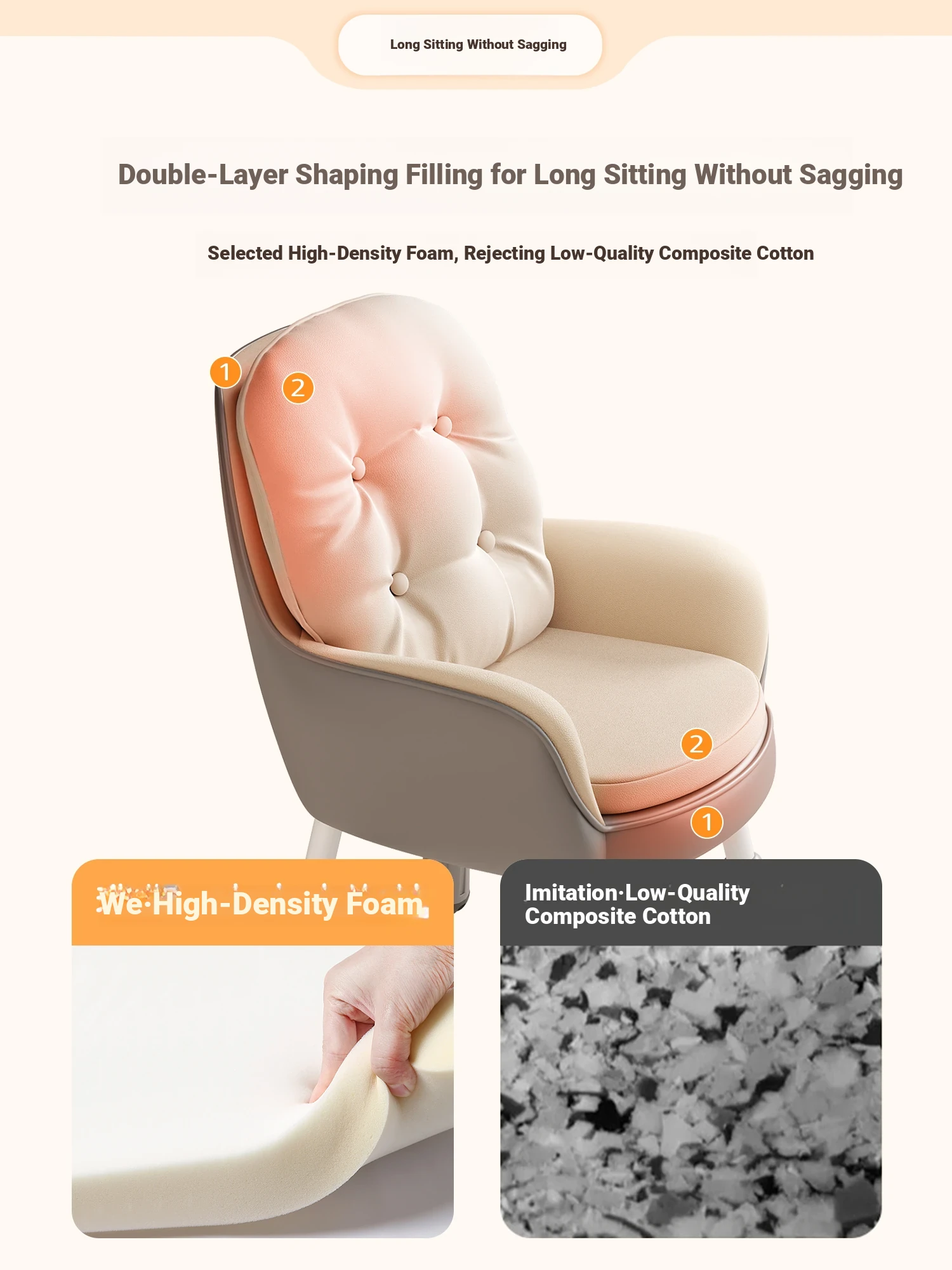 Feiwang Ergonomic Office Chair for Home and Study - Comfortable Long Sitting Desk Chair with Backrest, Ideal for Girls’ Bedrooms and Makeup Use - Stylish Swivel Design