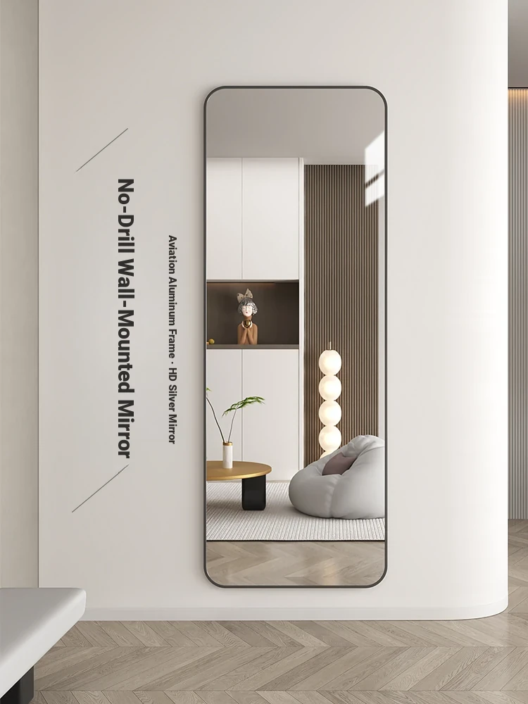 Wall-Mounted Full-Length Mirror - Self-Adhesive, No Drilling Required, Elegant Dressing Mirror for Home and Dormitory Use, Perfect for Fashion Try-Ons