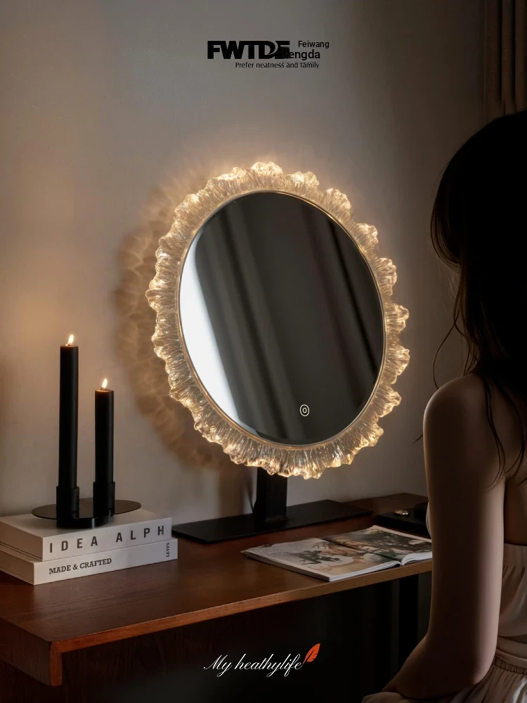 Smart LED Makeup Mirror with Lights - Elegant and Stylish Vanity Mirror for Home Use, Perfect for Bedroom Dressing Tables - High-End Desktop Cosmetic Mirror