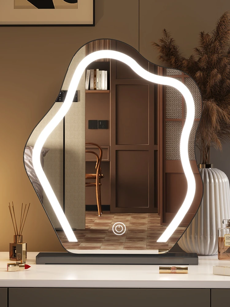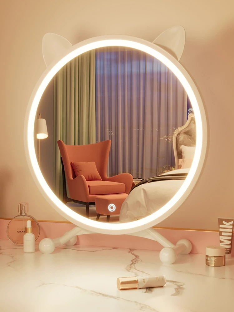 Smart LED Makeup Mirror with Lights - Cute Desktop Vanity Mirror for Bedroom, Perfect for Students and Dorms, Stylish INS Makeup Reflection