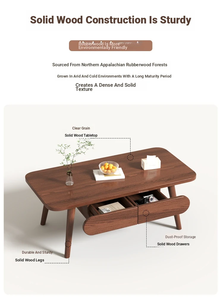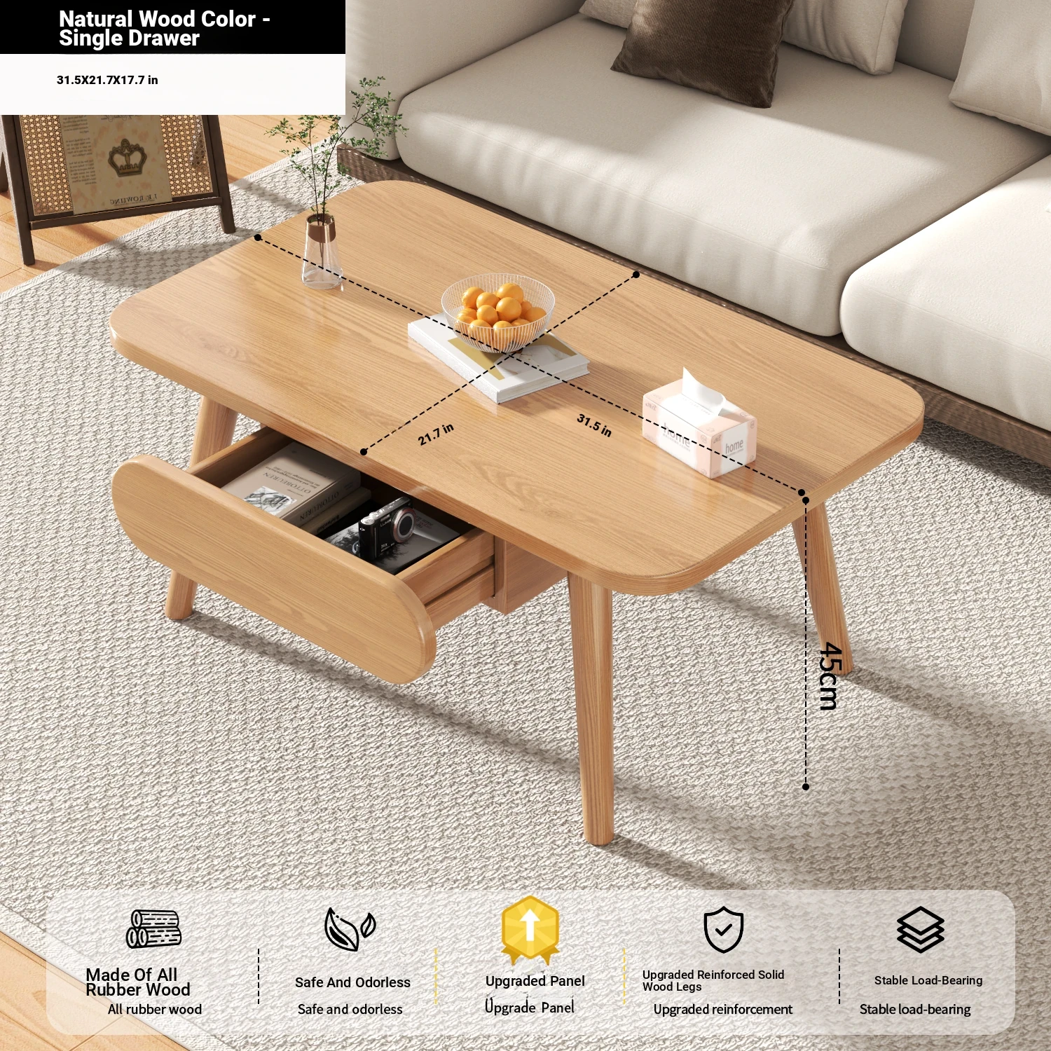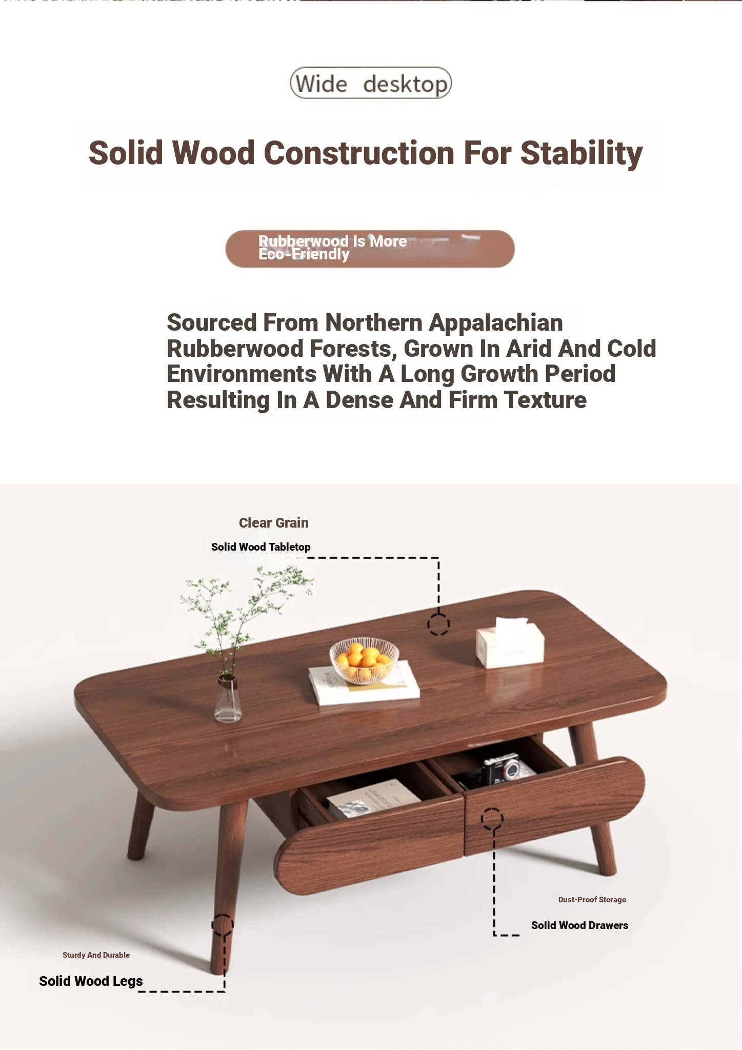 2025 New High-End Minimalist Solid Wood Coffee Table for Small Living Rooms - Elegant Natural Wood Design for Balcony and Home Use