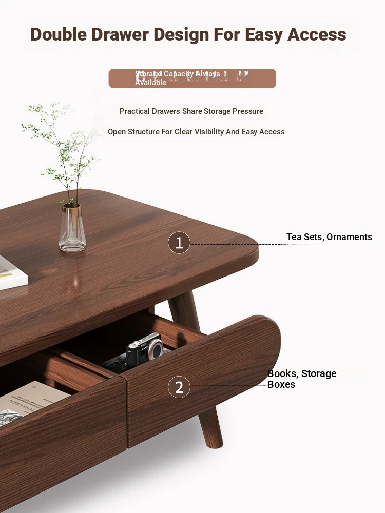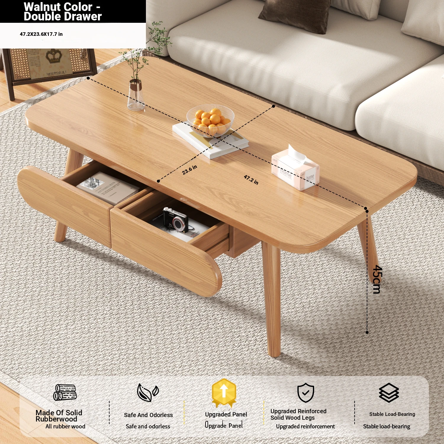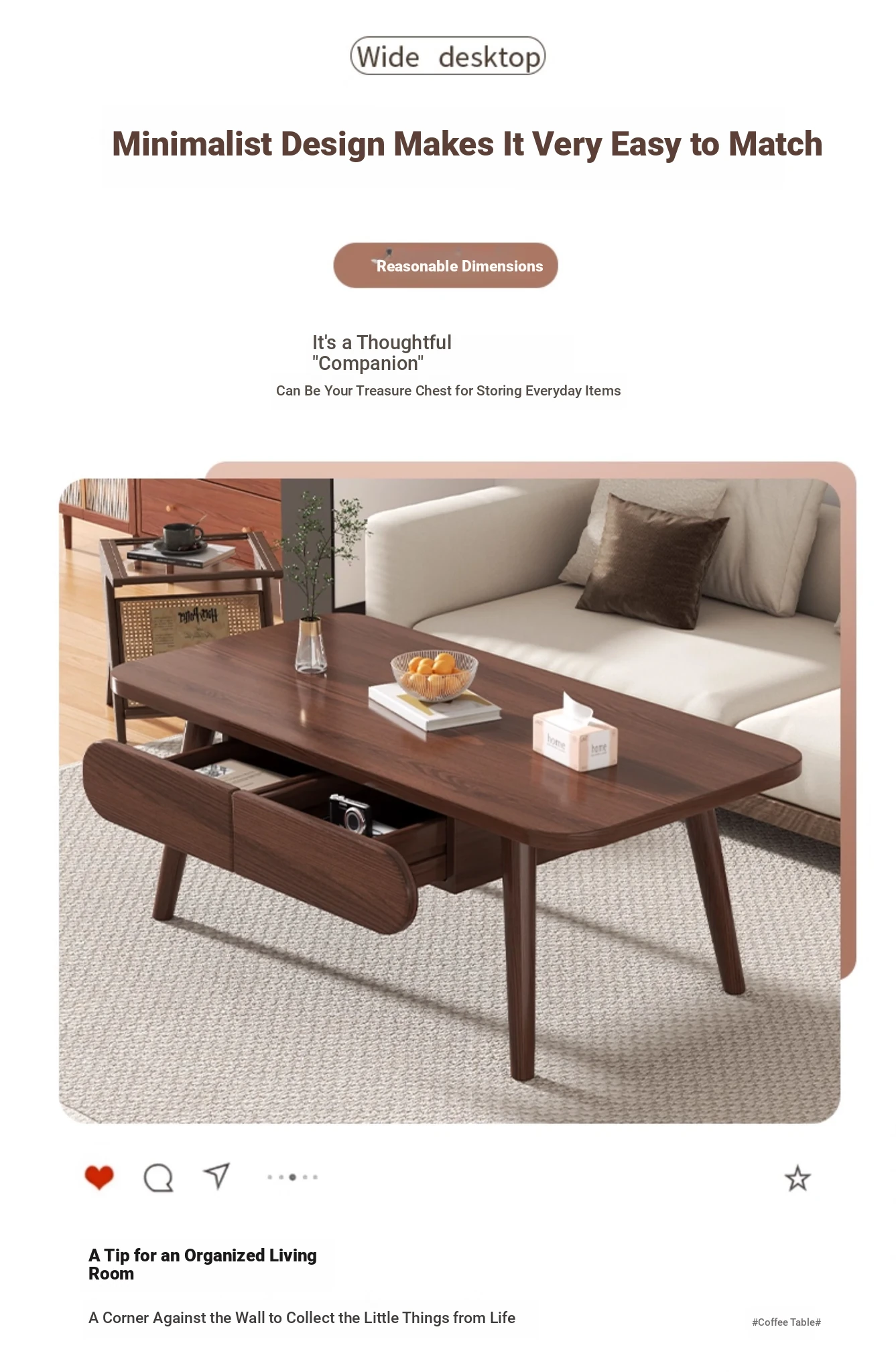 2025 New High-End Minimalist Solid Wood Coffee Table for Small Living Rooms - Elegant Natural Wood Design for Balcony and Home Use