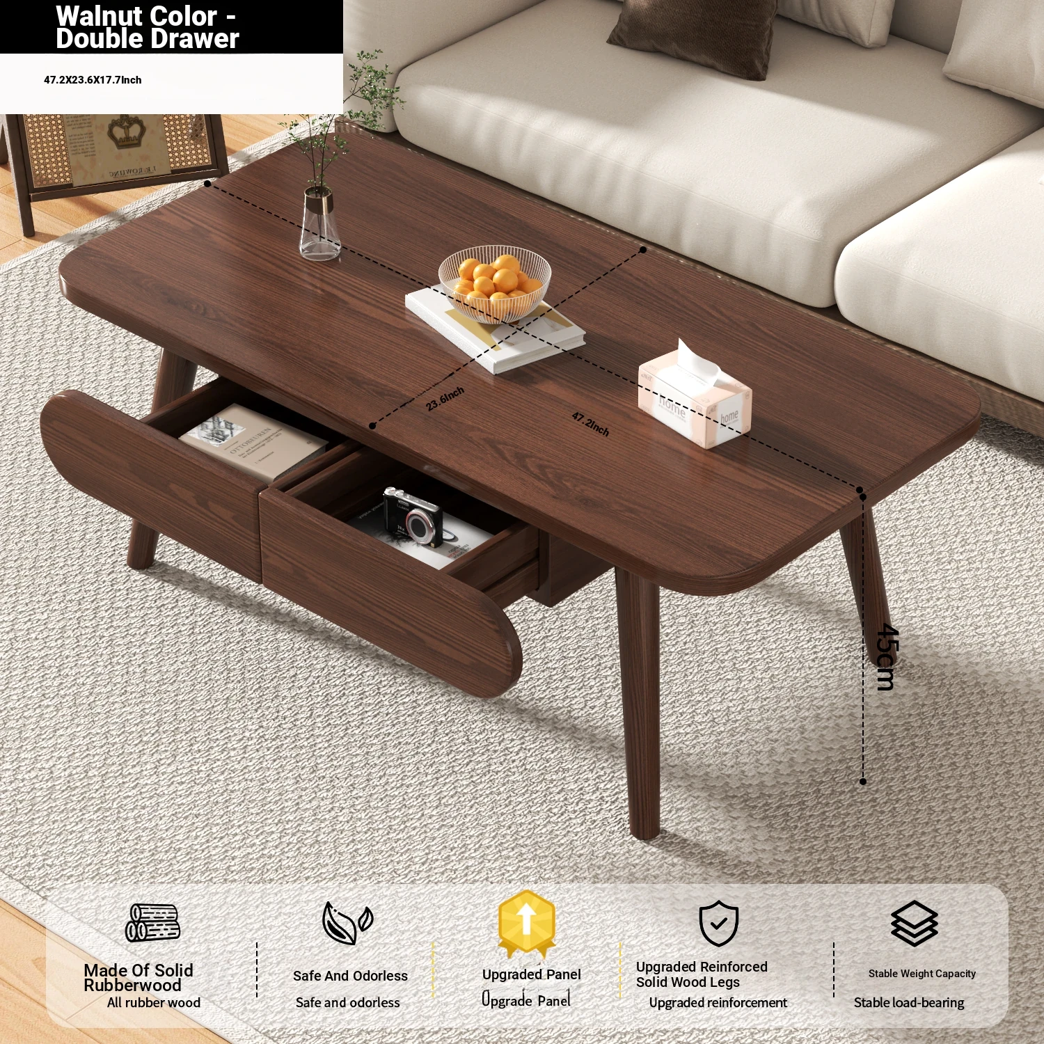 [Super rubber wood] walnut color double 47.24in*23.62in*17.72in