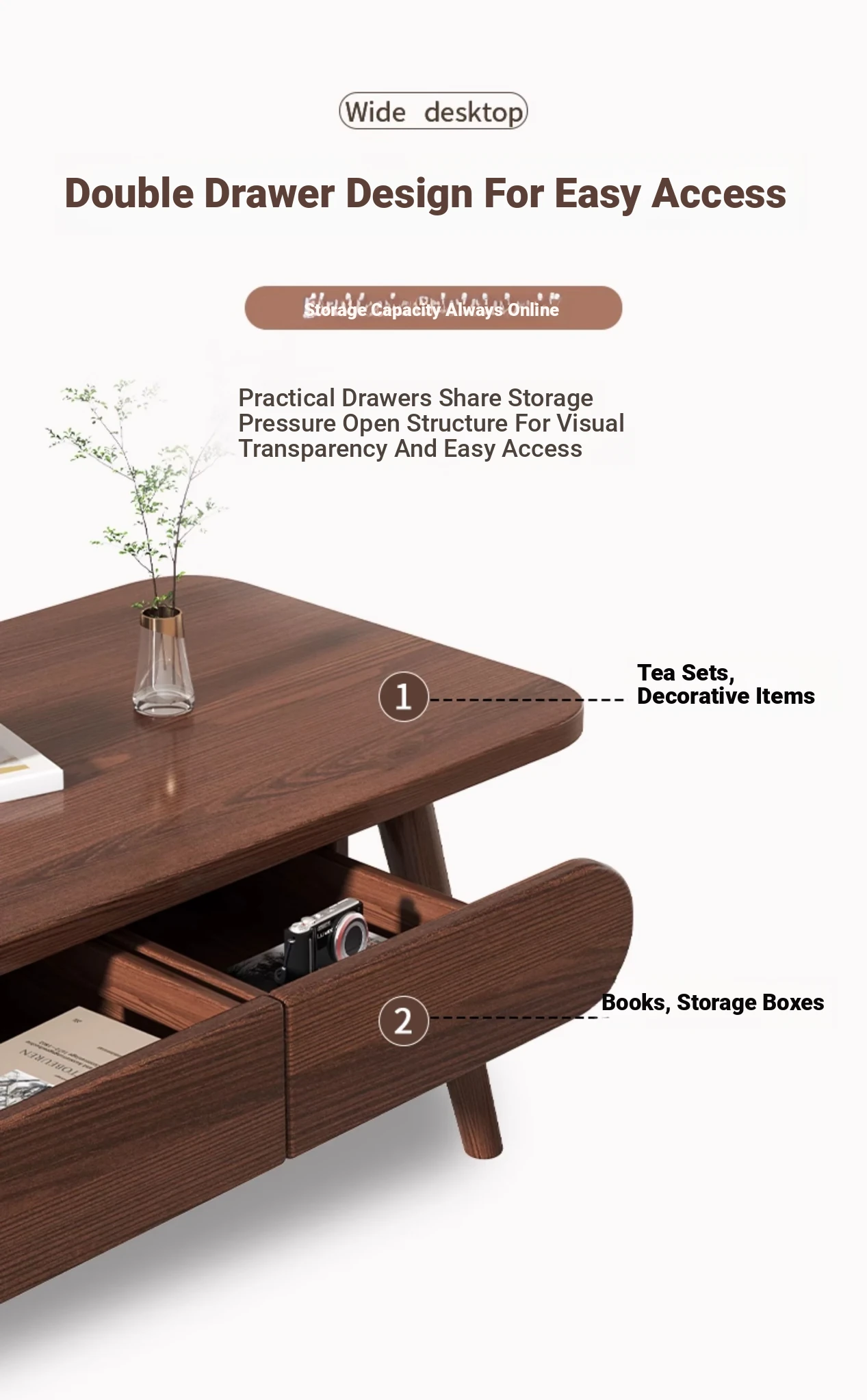 [Super rubber wood] walnut color no smoke 39.37in*21.65in*17.72in