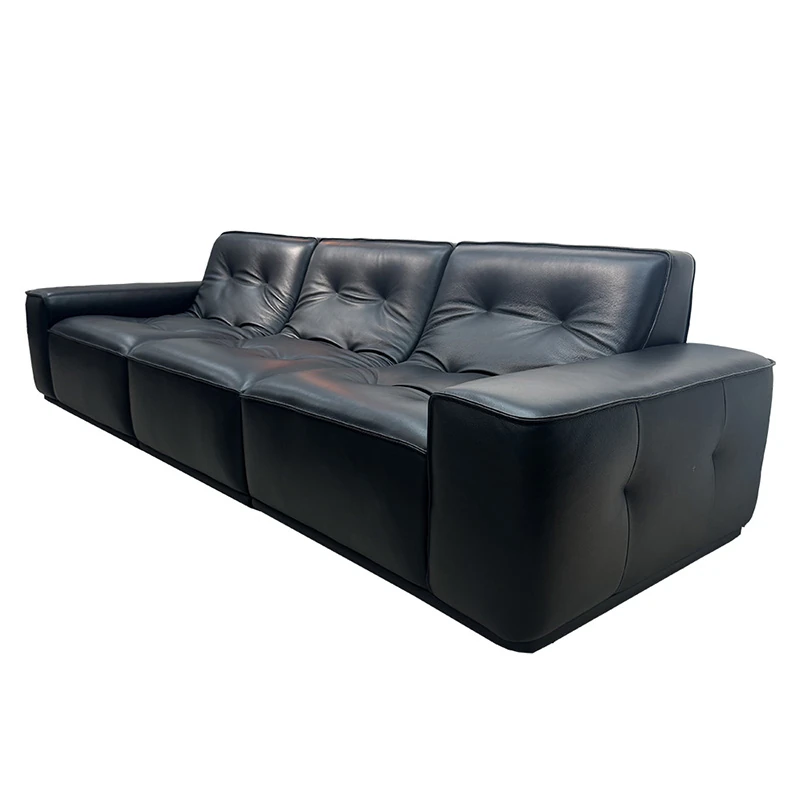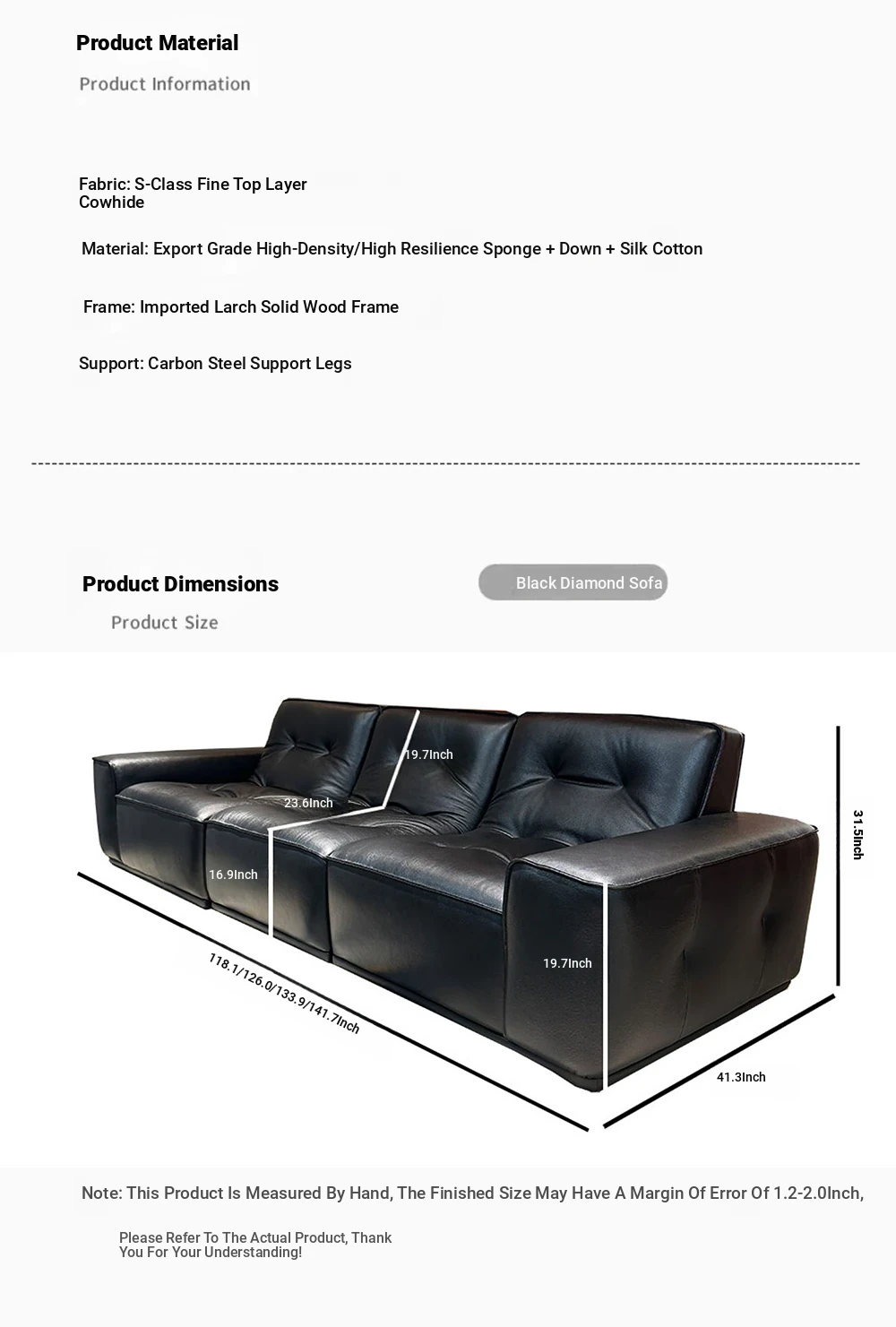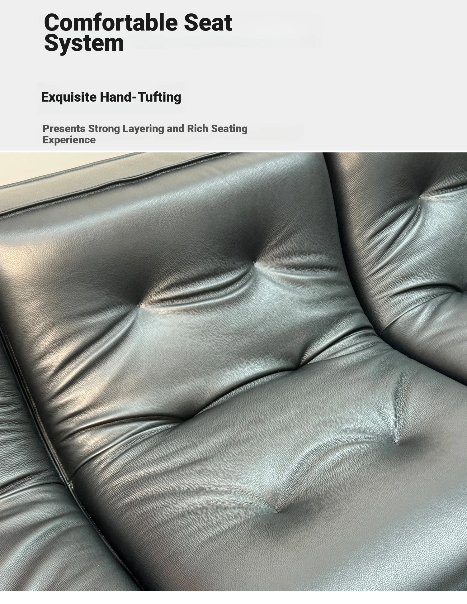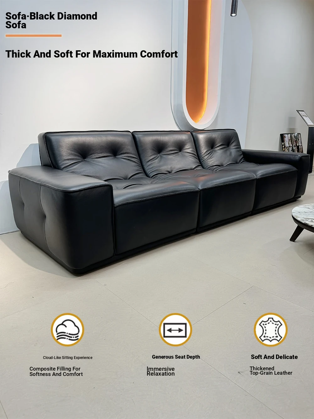 2025 New Italian Style Black Diamond Genuine Leather Sofa - Premium Top-Grain Leather for Your Living Room, Featuring a Bold Design and Luxurious Comfort