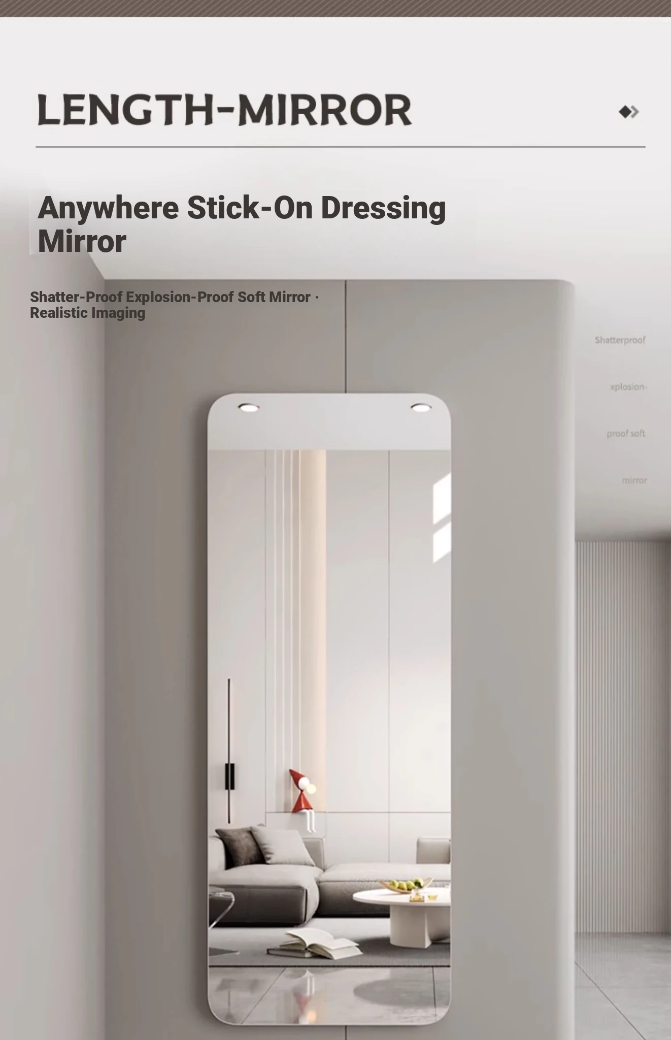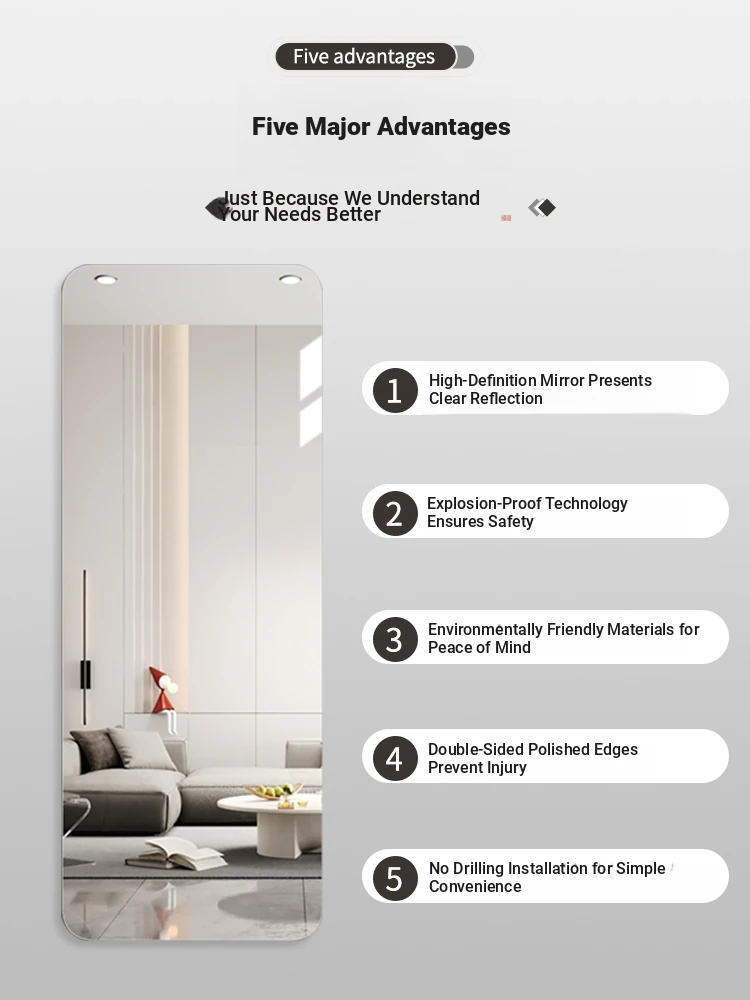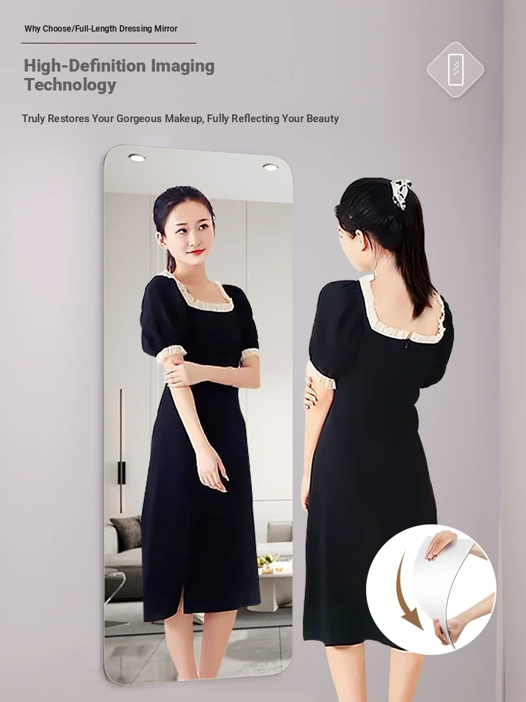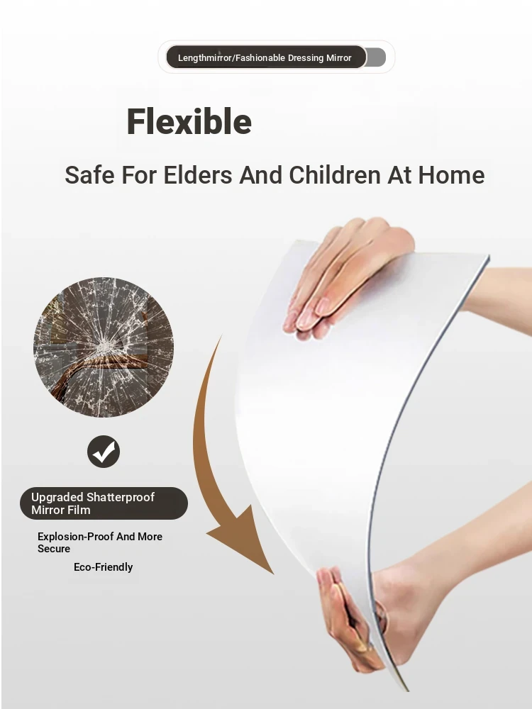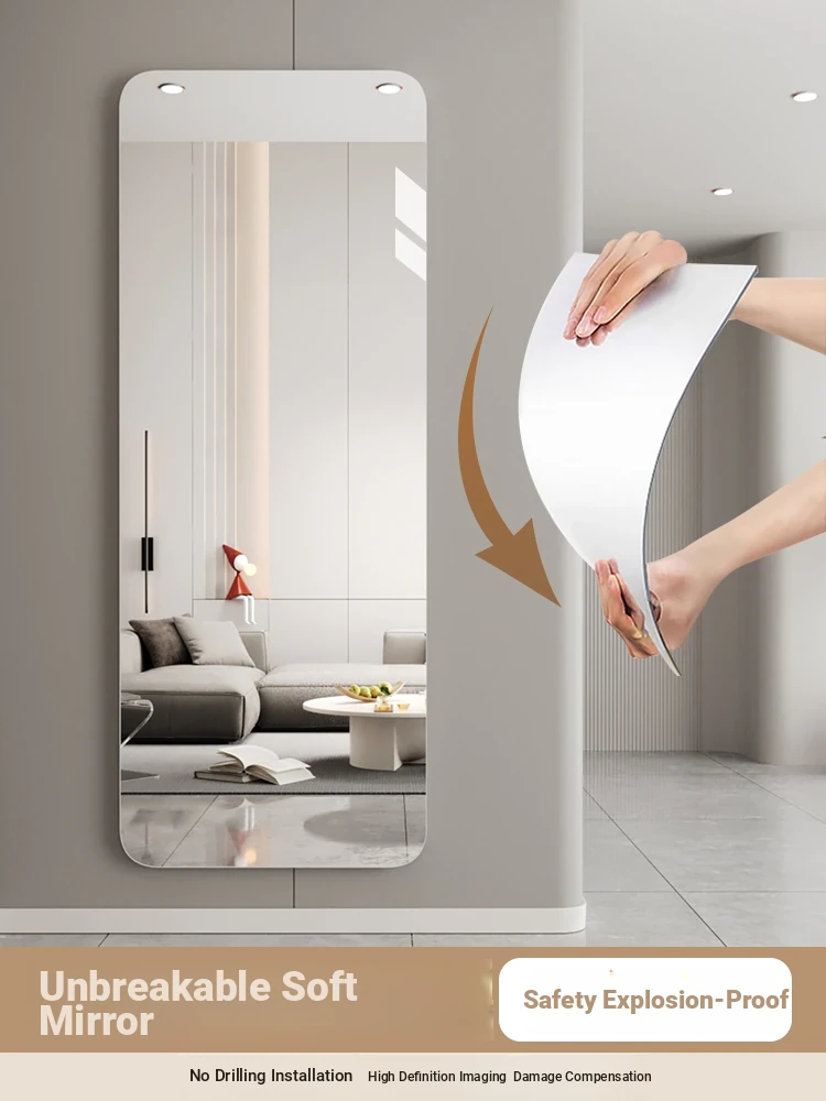 Acrylic Full-Length Wall Mirror for Student Dorms - Self-Adhesive Soft Mirror, Perfect for Makeup & Try-On, High Definition, Ideal Home Accessory