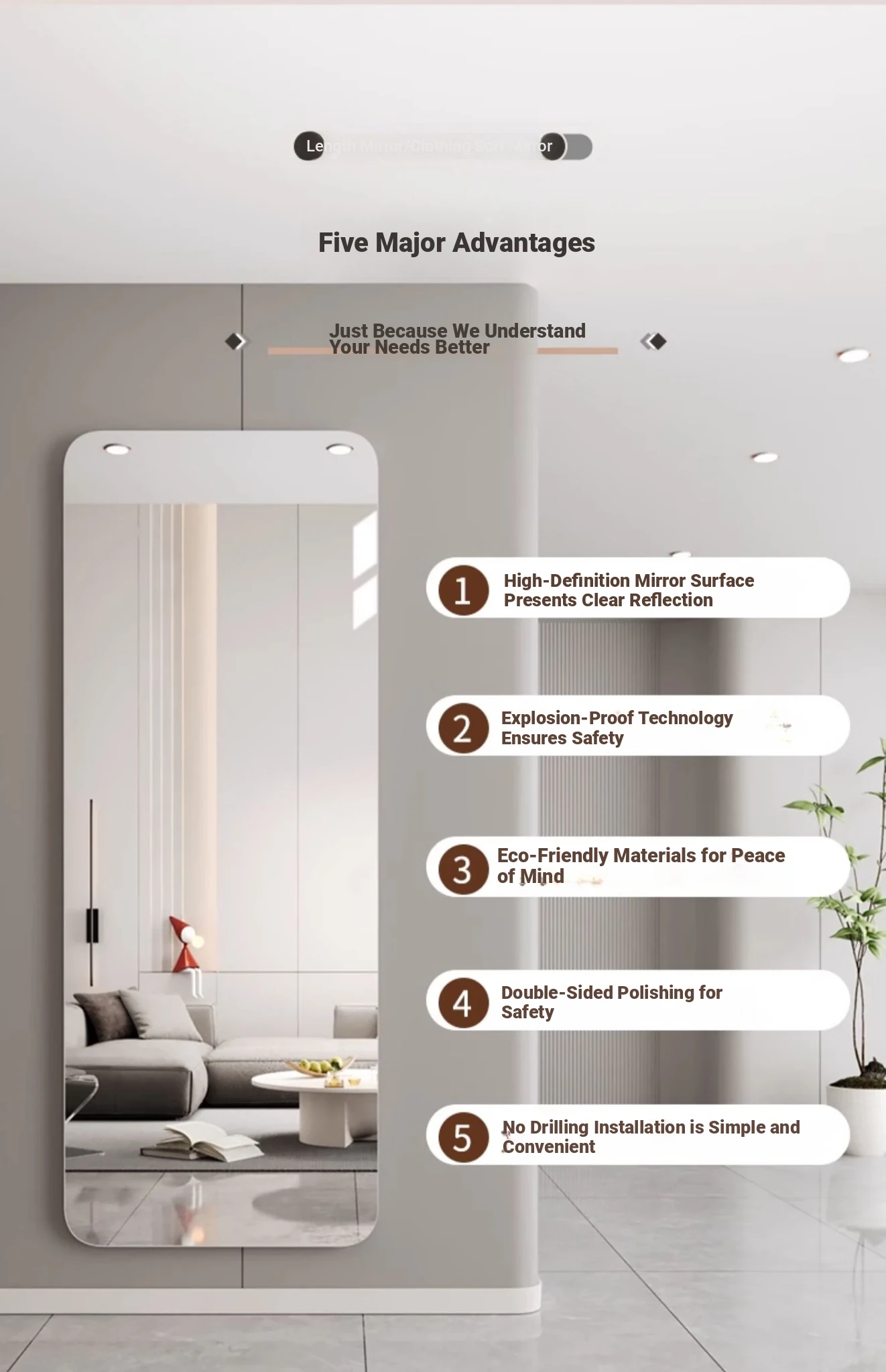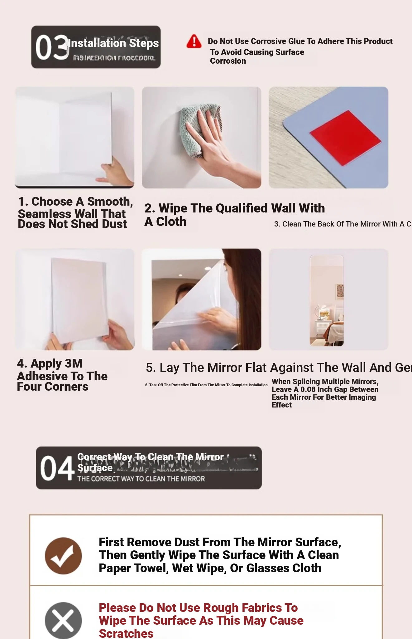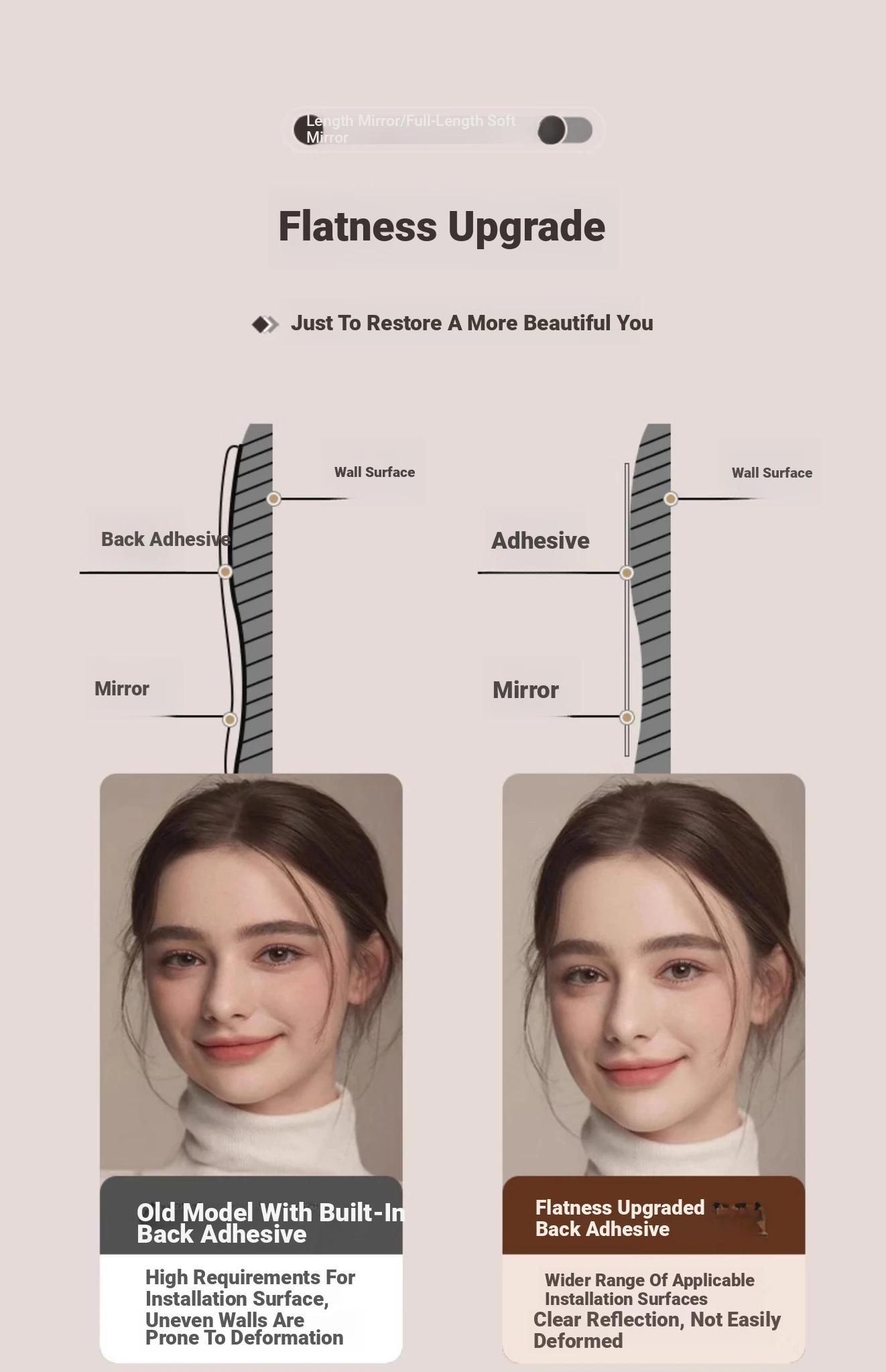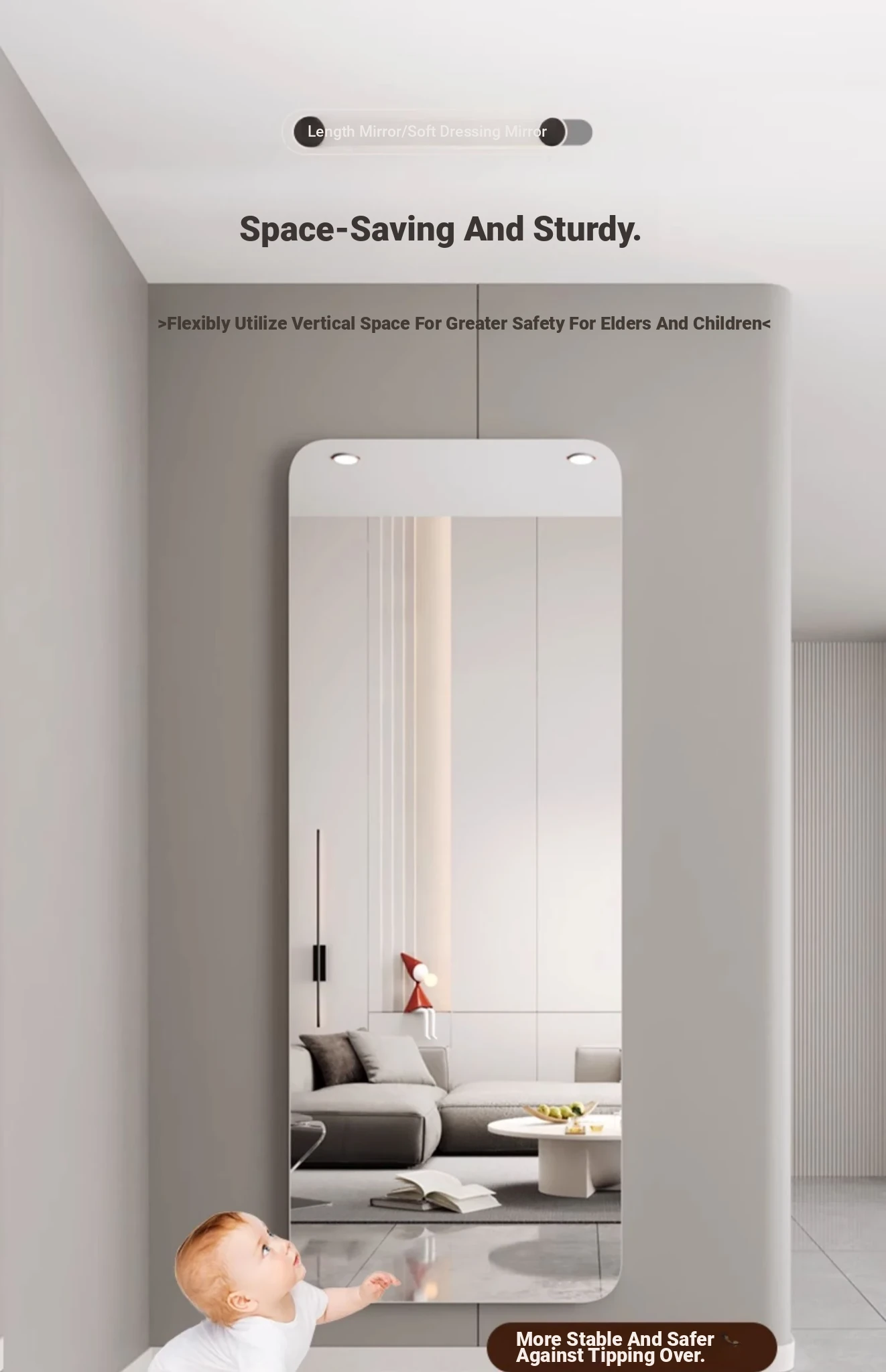 Acrylic Full-Length Wall Mirror for Student Dorms - Self-Adhesive Soft Mirror, Perfect for Makeup & Try-On, High Definition, Ideal Home Accessory