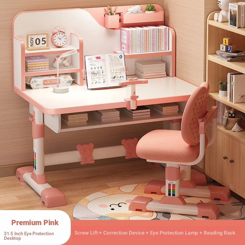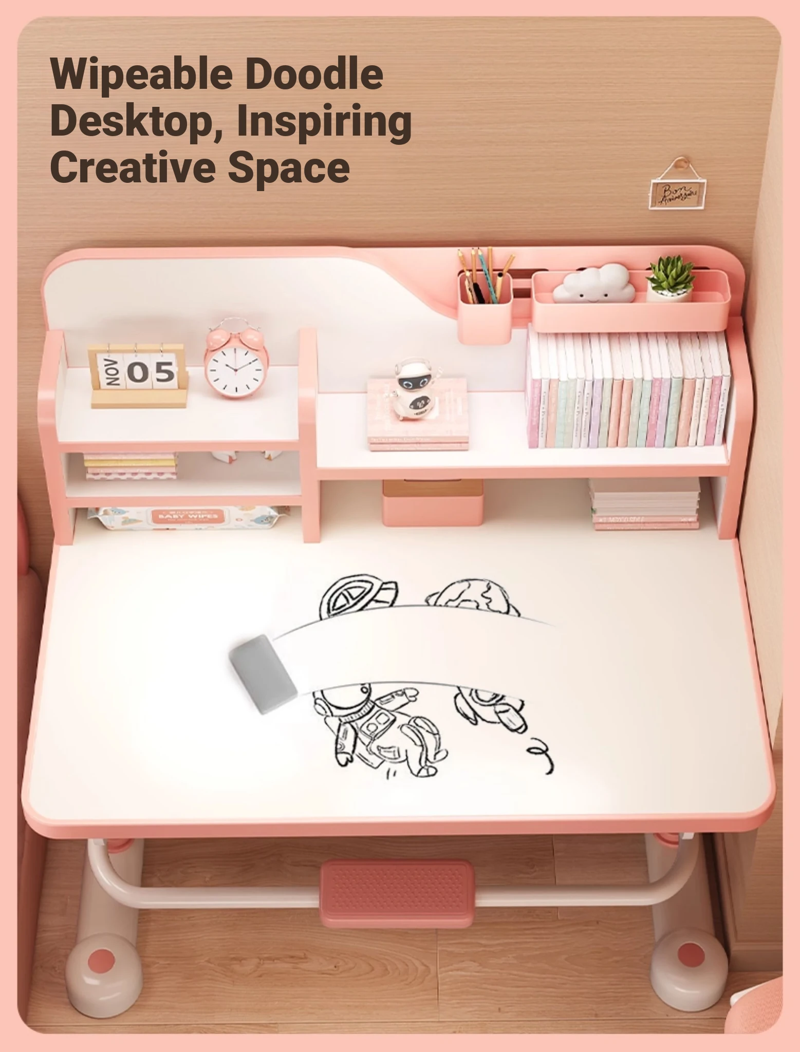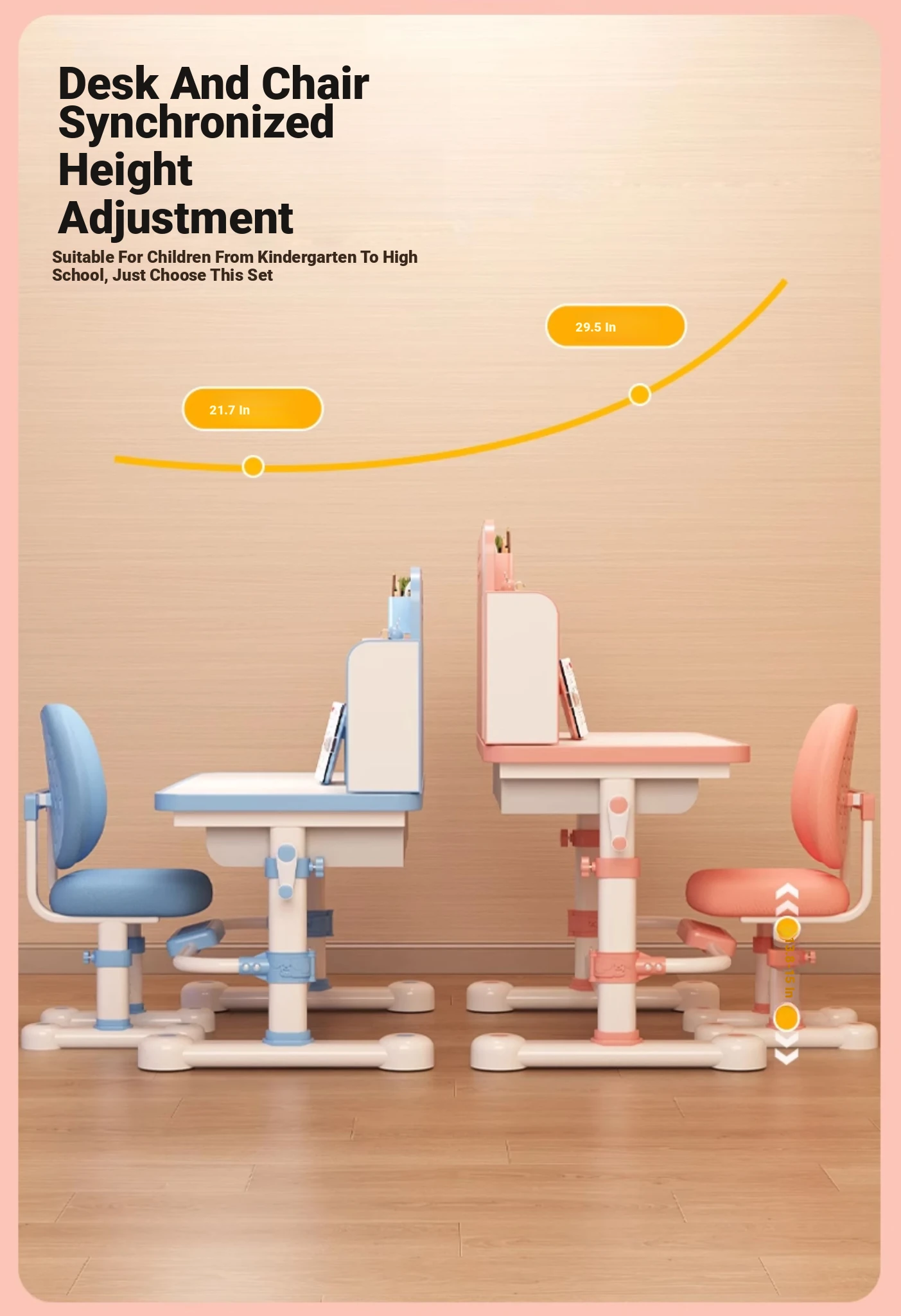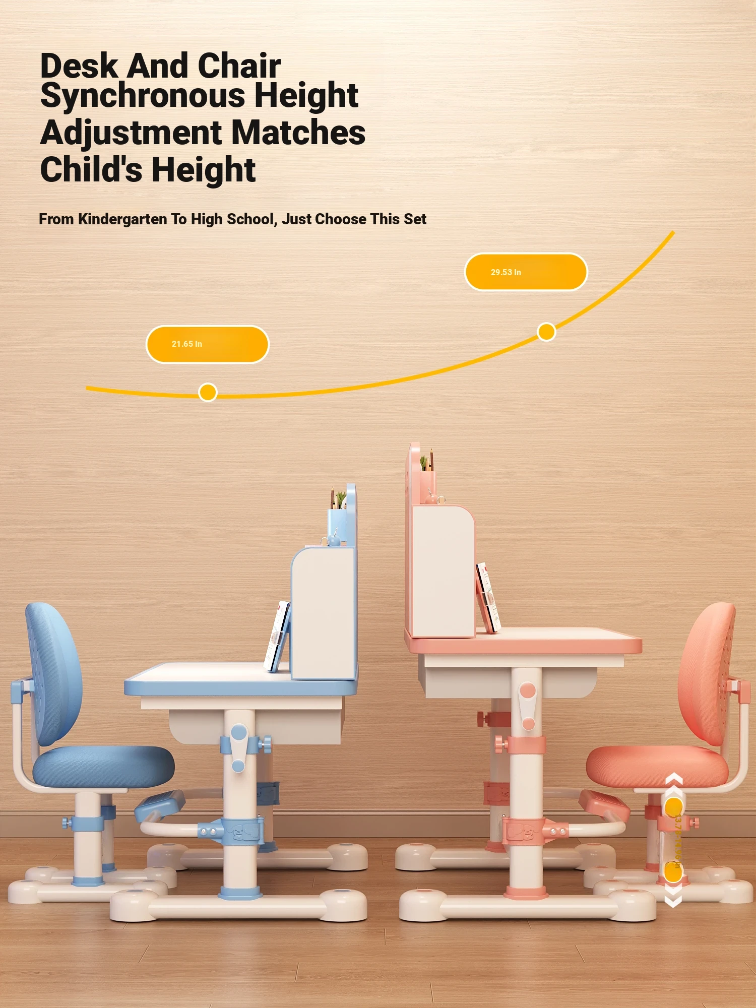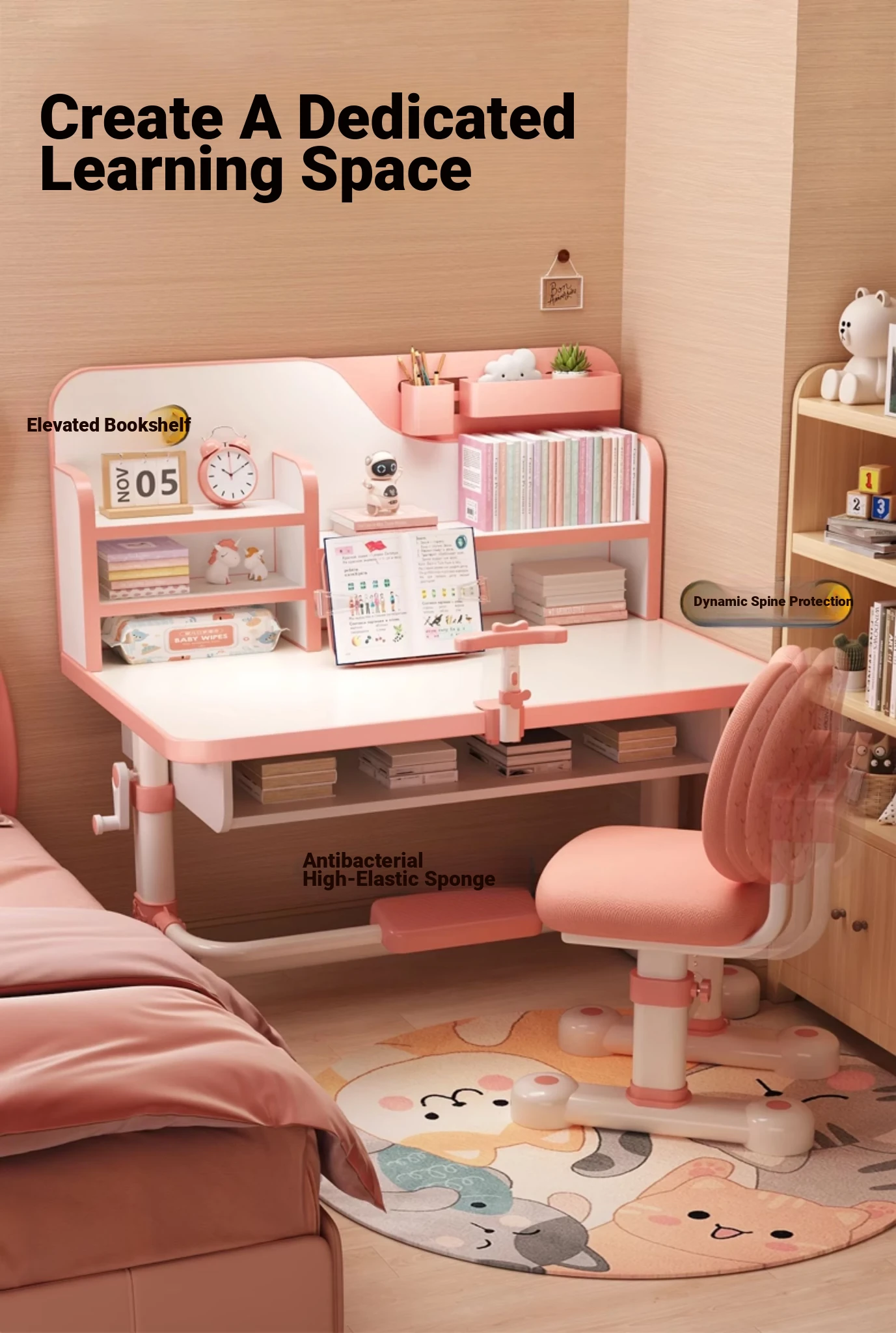 Adjustable Kids Study Desk and Chair Set - Perfect for Elementary Students! Ideal for Home Use, Homework, and Writing in the Bedroom. Stylish Design for Girls, Promotes Comfort and Productivity!