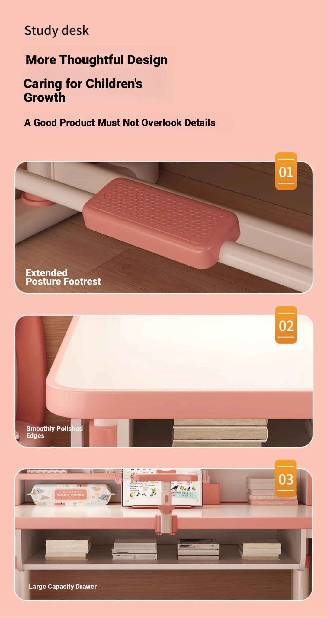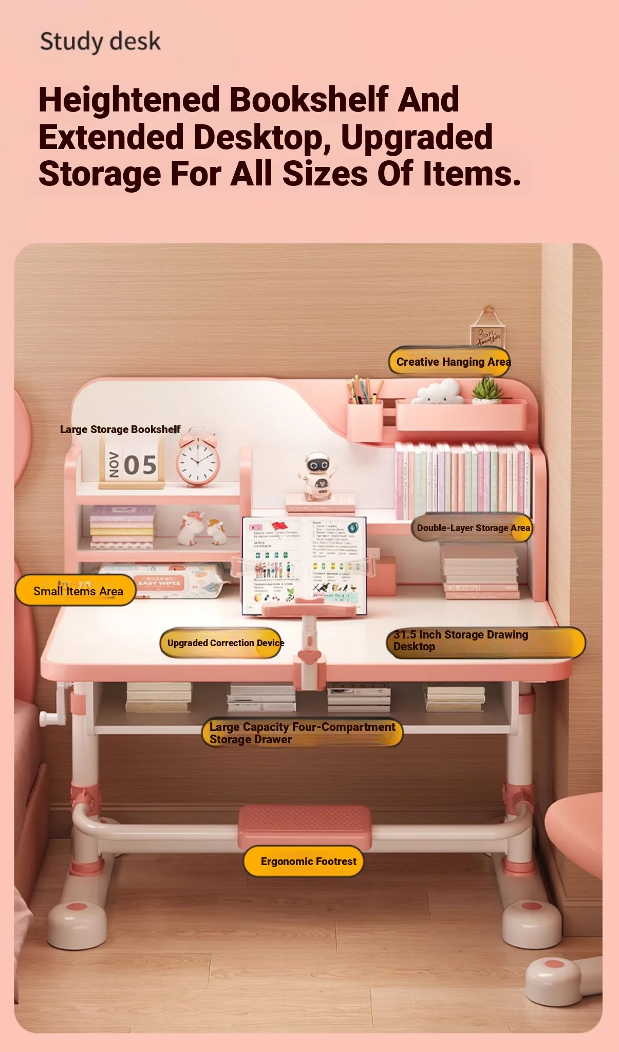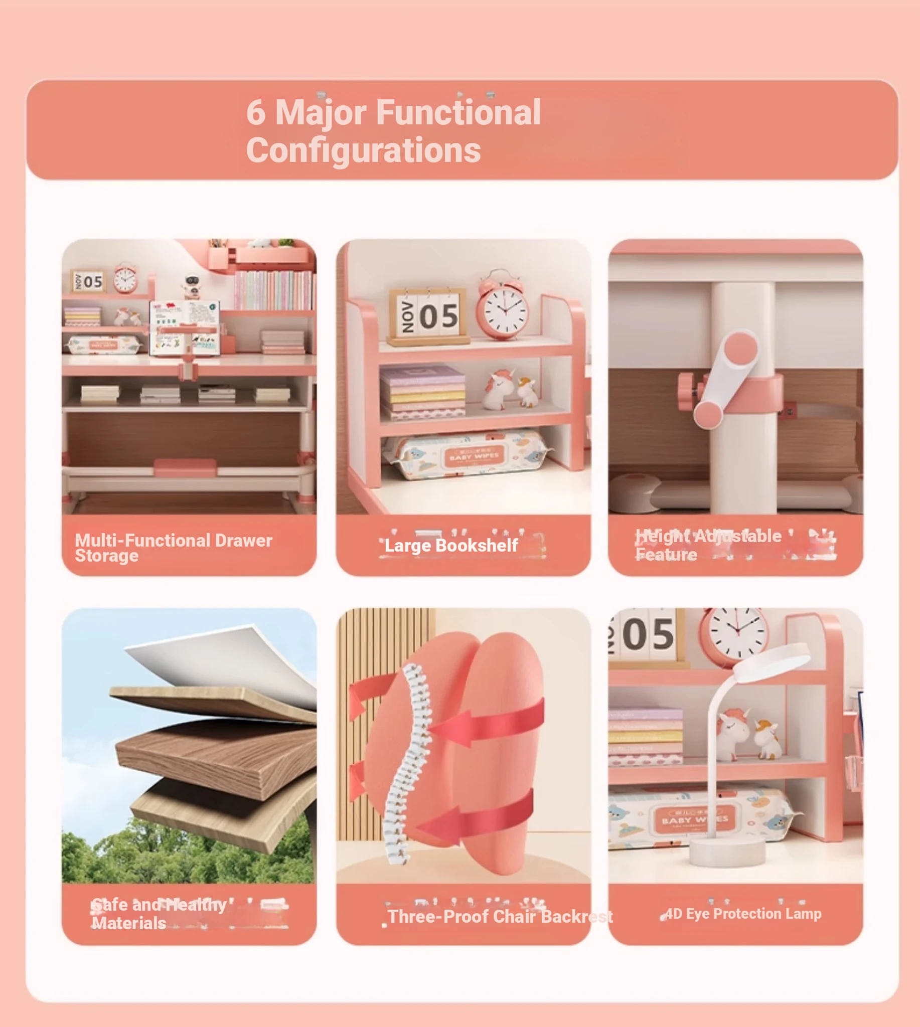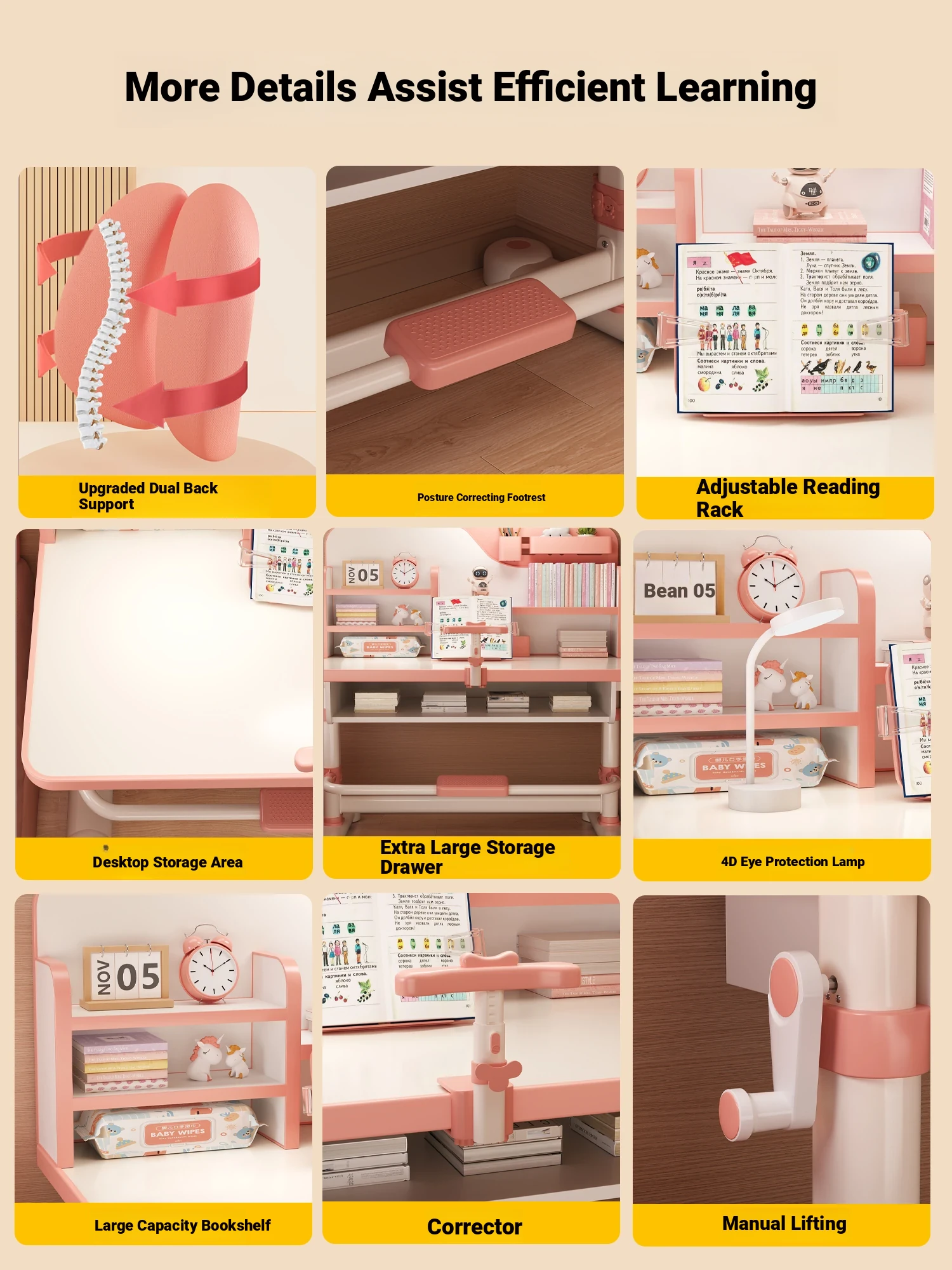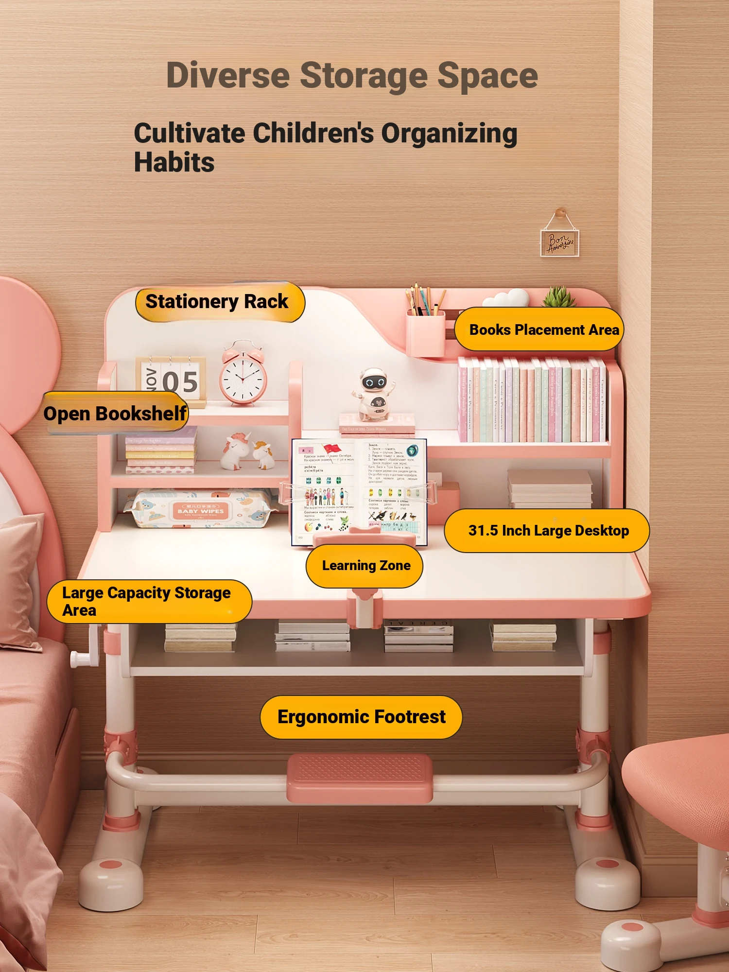Adjustable Kids Study Desk and Chair Set - Perfect for Elementary Students! Ideal for Home Use, Homework, and Writing in the Bedroom. Stylish Design for Girls, Promotes Comfort and Productivity!