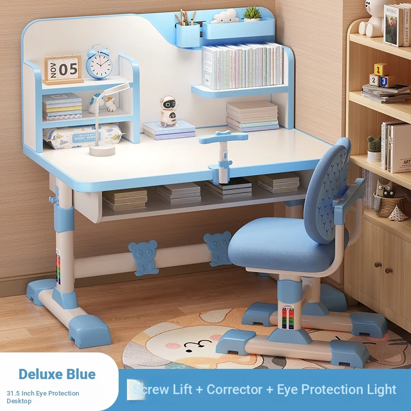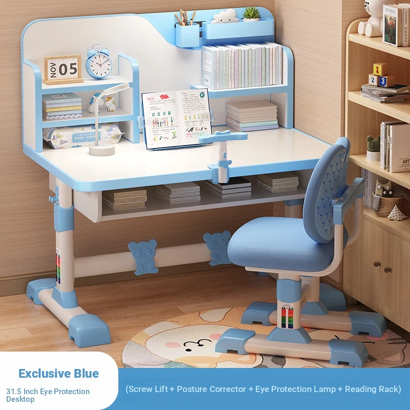 ⭐Upgraded and Reinforced Table and Chair Leg [Flagship Blue] Hand Adjustable/Positive Position Double Back Chair/Sponge Cushion Cover/Orthotic/Eye Protection Lamp (Original Chair Cover)