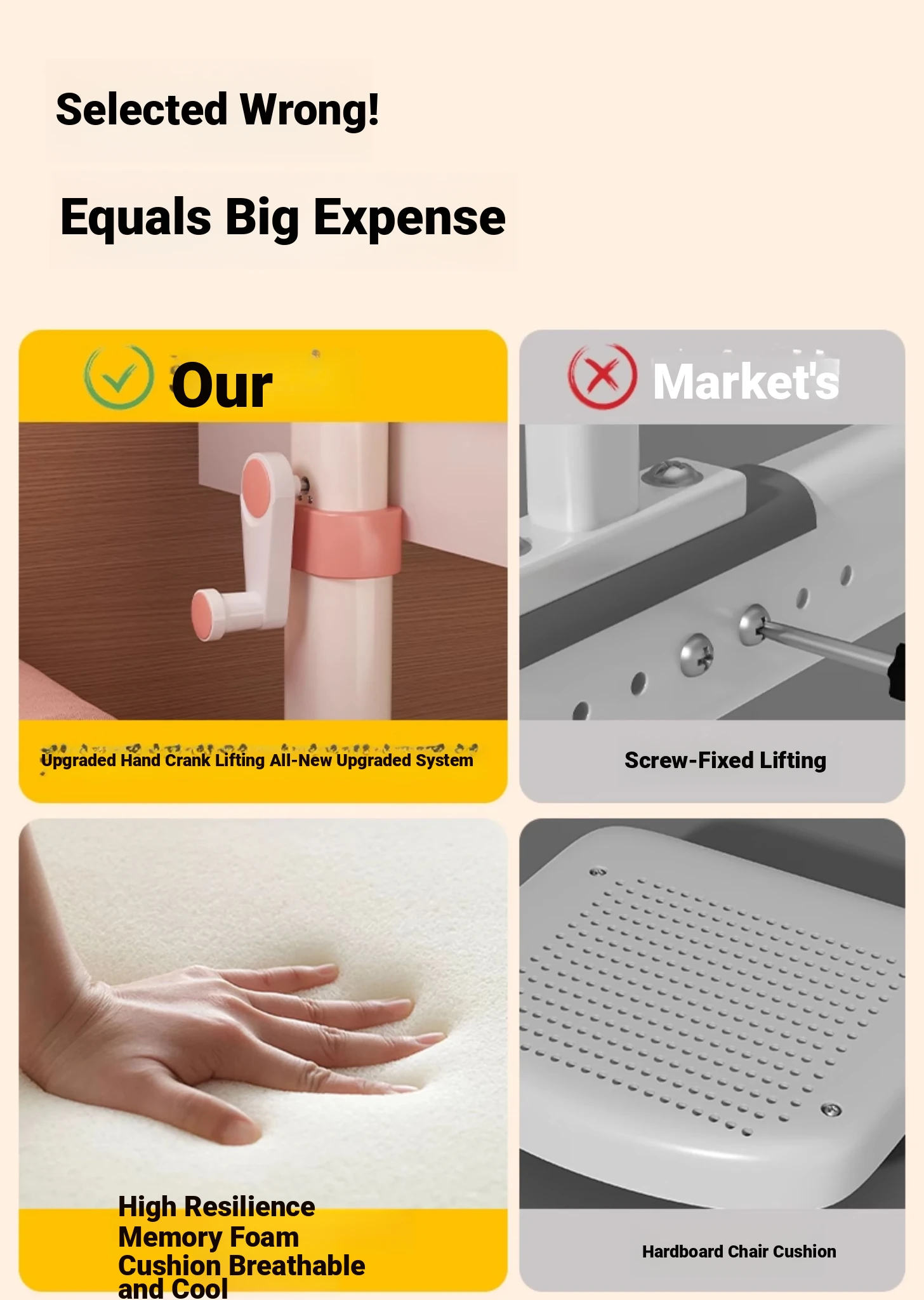 ⭐Upgraded Reinforced Table and Chair Leg [Flagship Powder] Hand Adjustable/Sponge Cushion Cover/Orthosis/Eye Protection Lamp/Orthogonal Double Back Chair (Original Chair Cover)