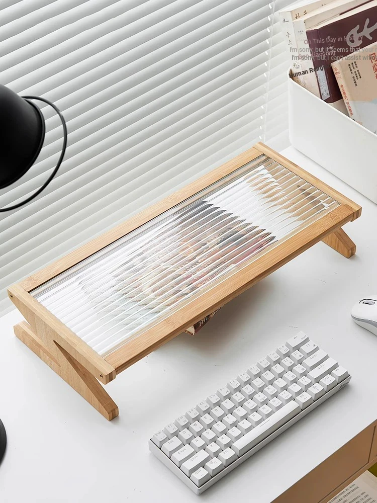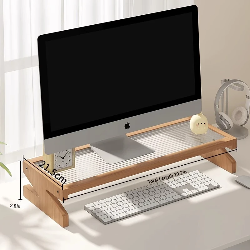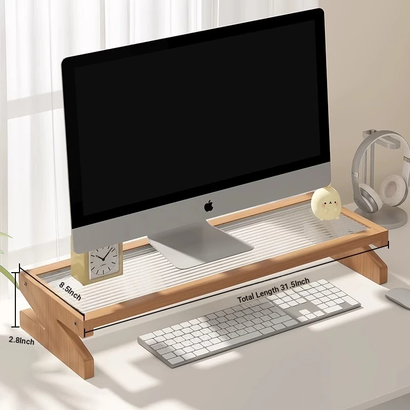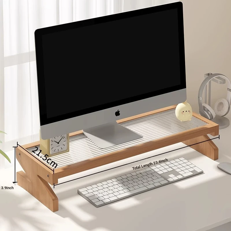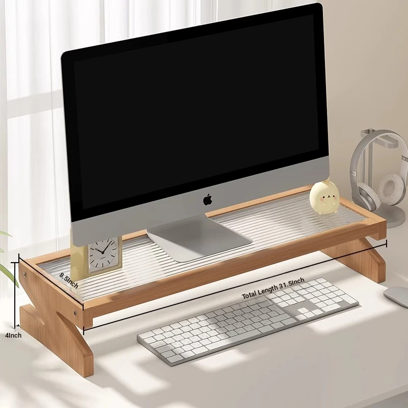 Adjustable Monitor Stand - Desk Organizer for Desktop Computers, Rubber Wood Support, Perfect for Office Space, Stylish and Functional Storage Solutions