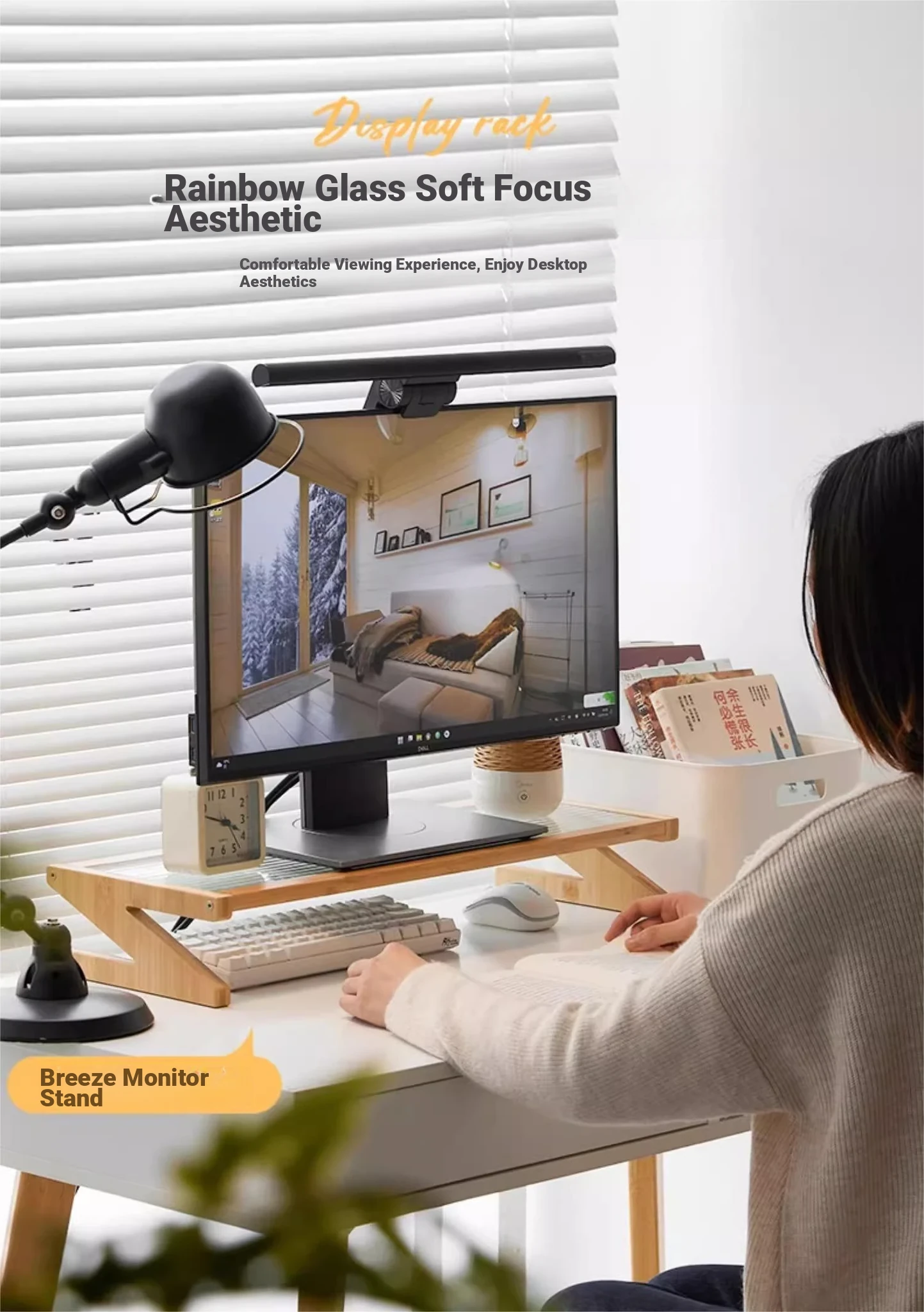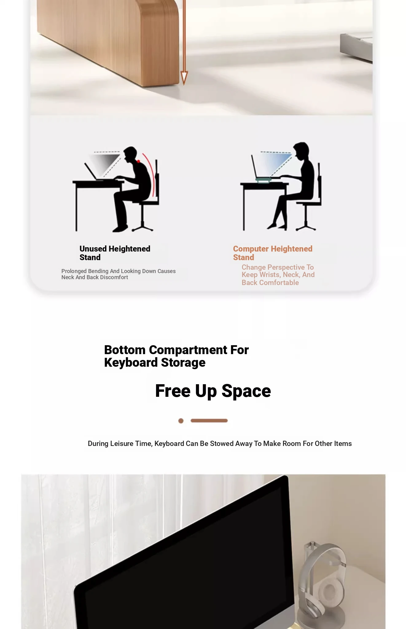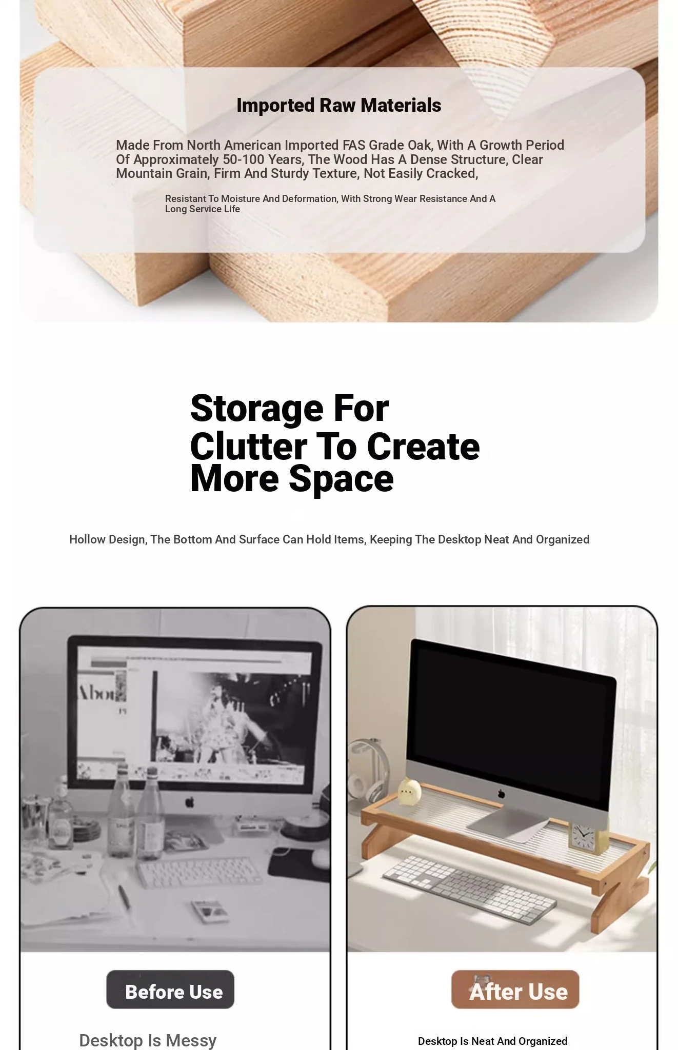 Adjustable Monitor Stand - Desk Organizer for Desktop Computers, Rubber Wood Support, Perfect for Office Space, Stylish and Functional Storage Solutions