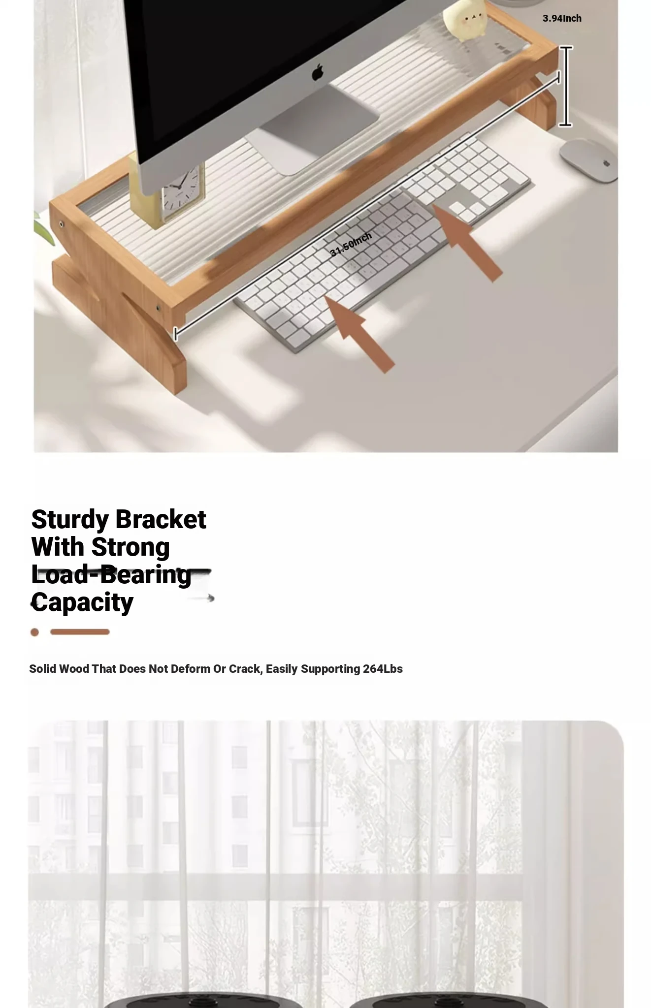 [Log color] raised rack 31.50in*3.94in★Stable Bracket Load-bearing Upgrade