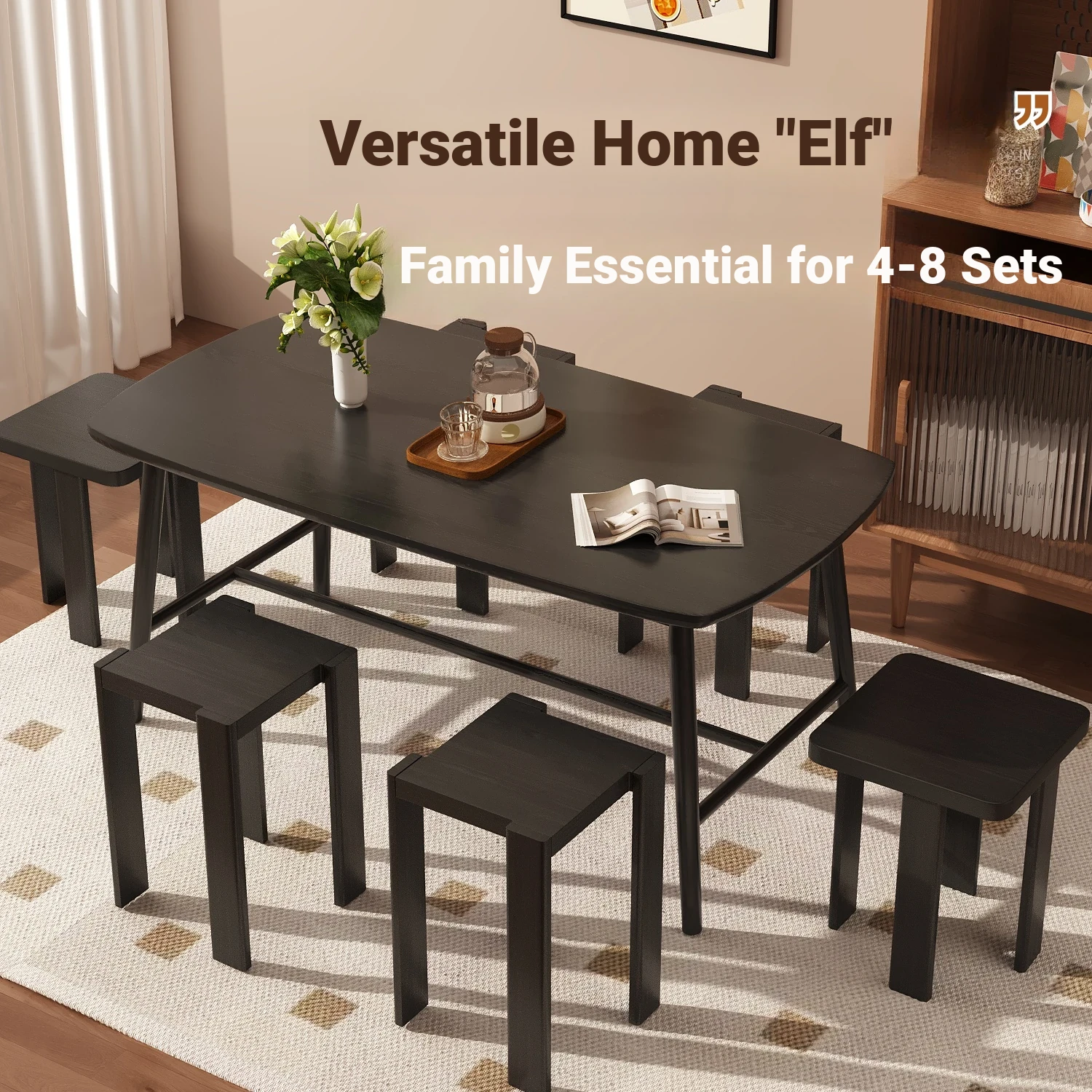[Home Delivery-All Solid Wood] Black-Six Stool [Four-in-One Combination Stool Free of Installation]]
