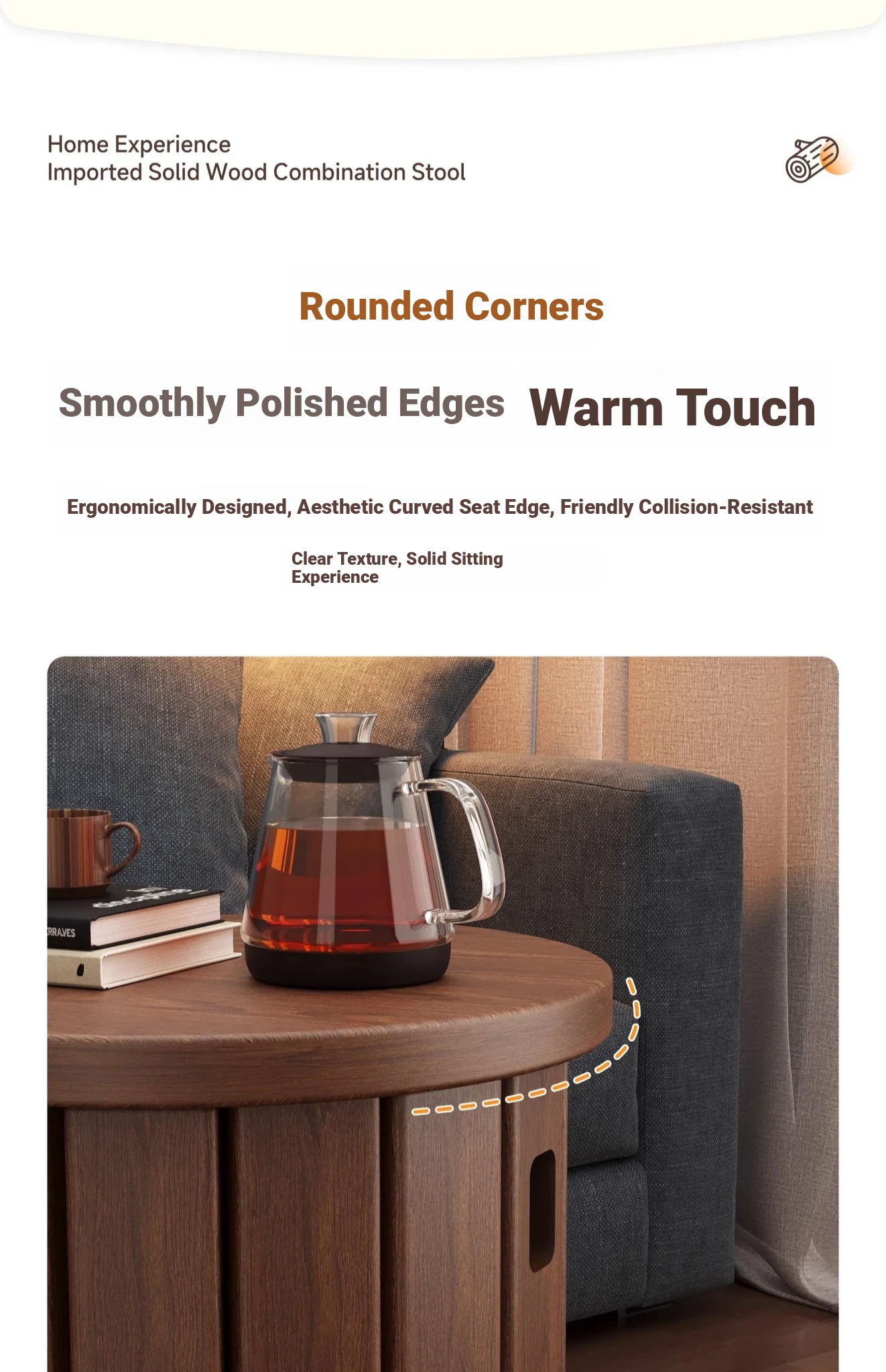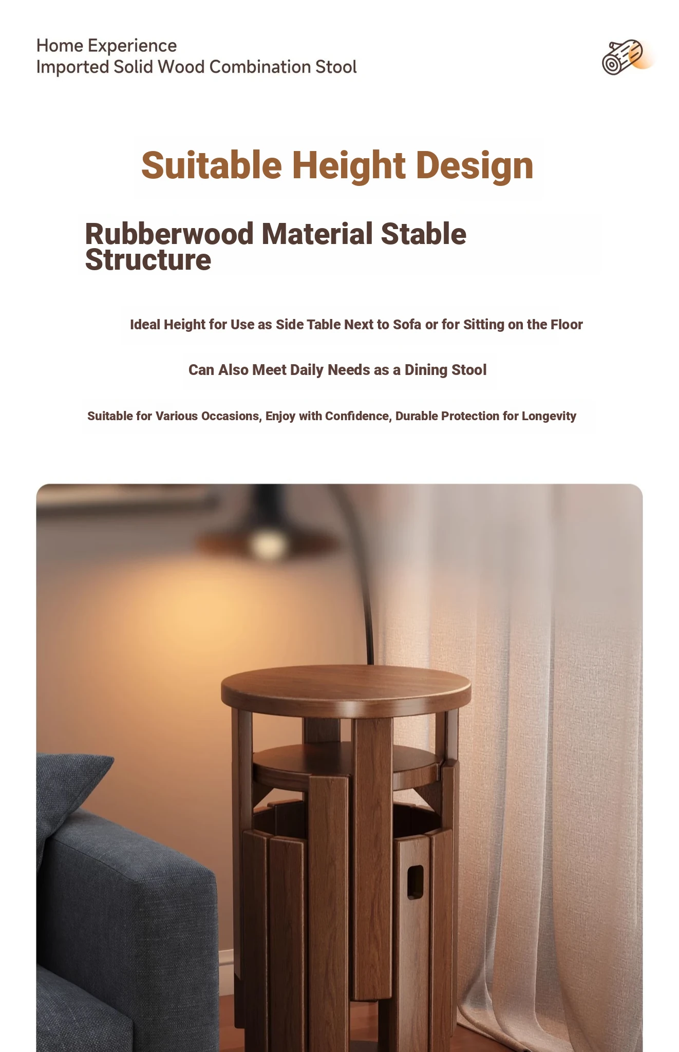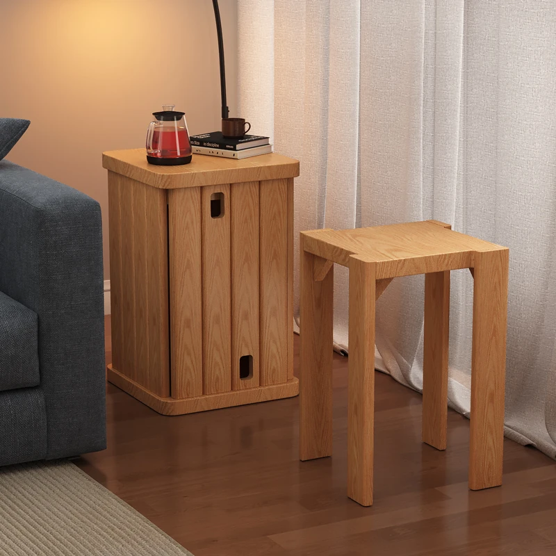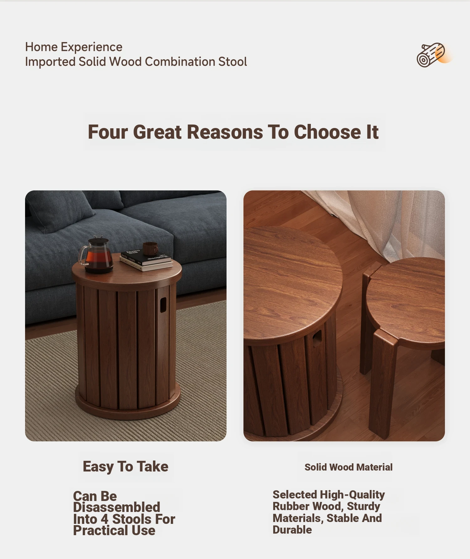 [Upgrade -100 All Solid Wood] Log Color-Square Stool [Four Stool-Home Delivery]]