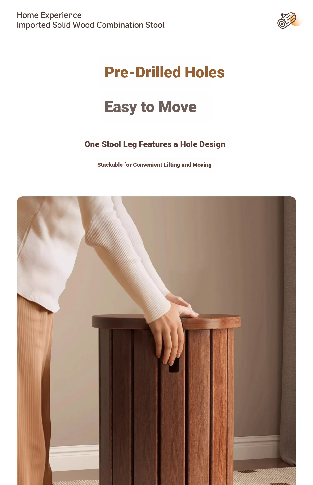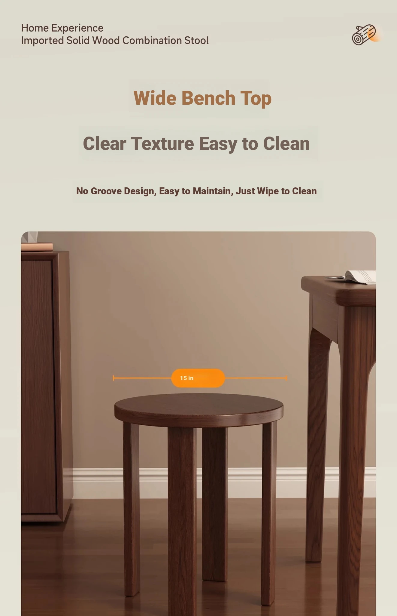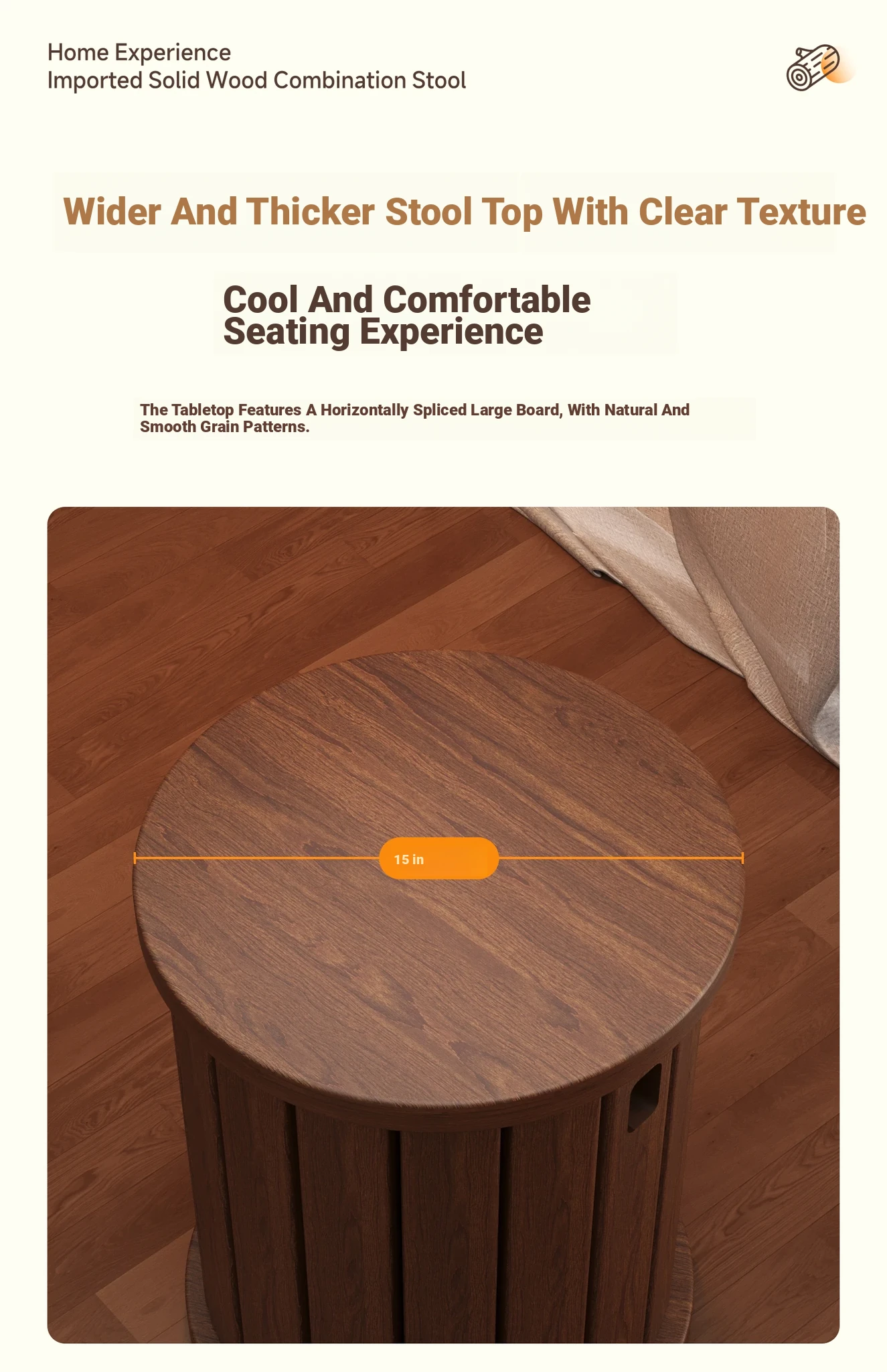 [Upgraded Pulley + Home Delivery] Log Color★Square stool [all solid wood -5 years warranty-home delivery]]