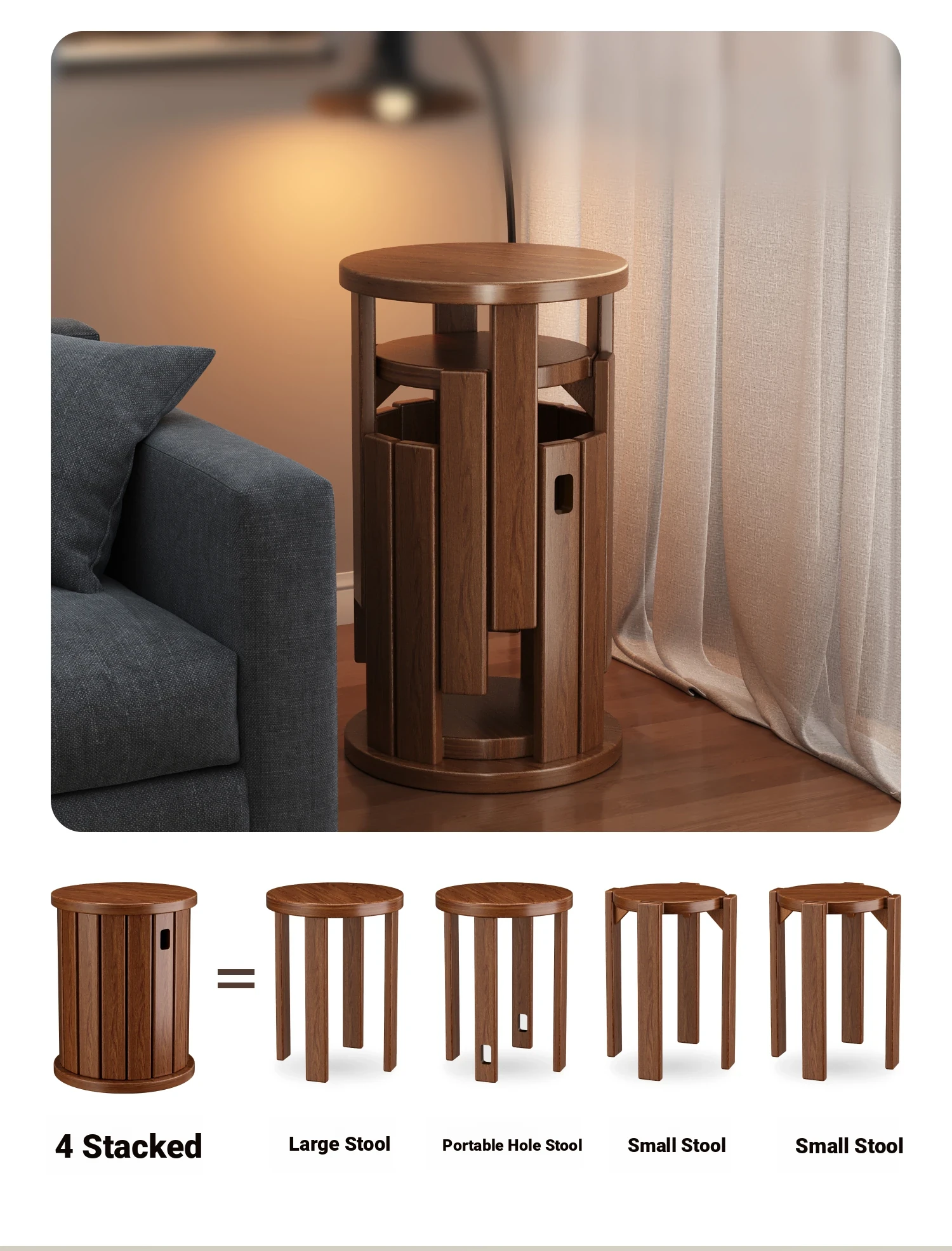 [Upgrade Pulley-All Solid Wood] Black-Fengli Stool [Four-in-One Combination Stool-Home Delivery]]