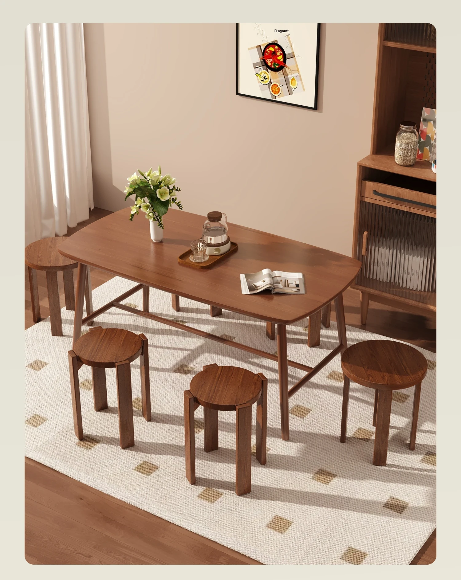 [Upgrade -100 All Solid Wood] Walnut Color-Square Stool [Four Stool-Home Delivery]]