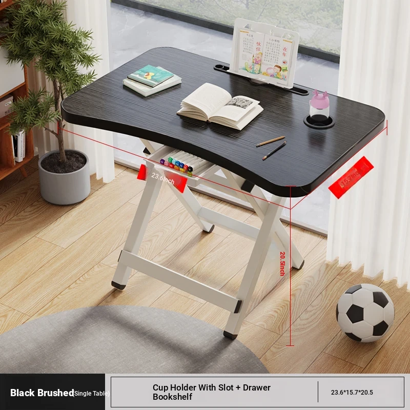 [Single Table] Black Wire-drawing 60_40_52 (Card Slot Cup Holder + Drawer Bookshelf)
