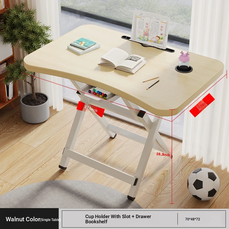 [Single Table] White Maple 70_48_72 (Card Slot Cup Holder + Drawer Bookshelf)
