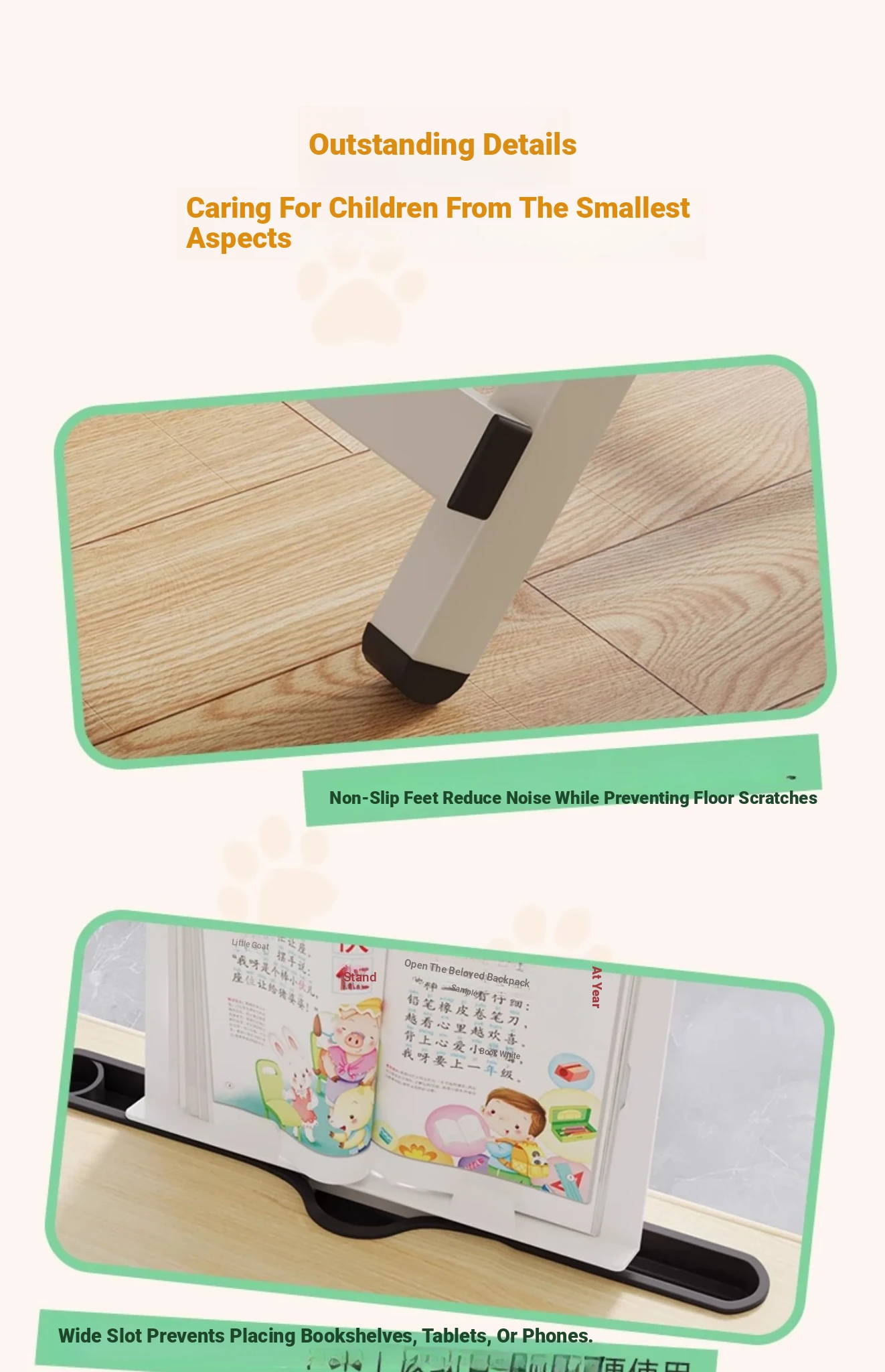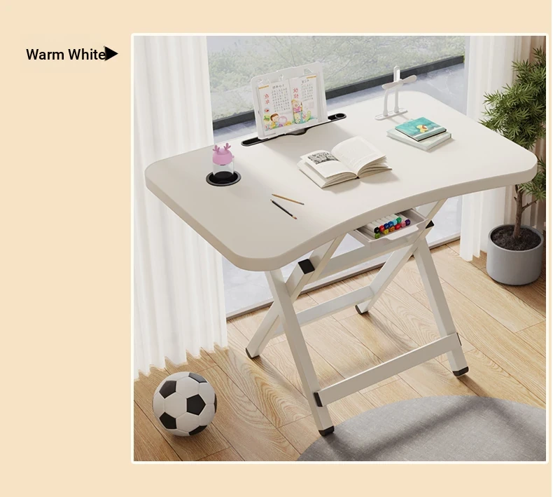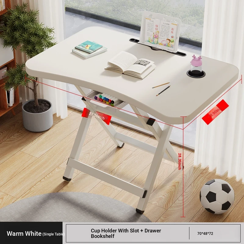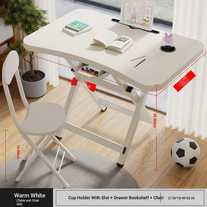 [Table and Chair combination] warm white 70_48_72 (card slot cup holder + drawer bookshelf) stool height 16.93in