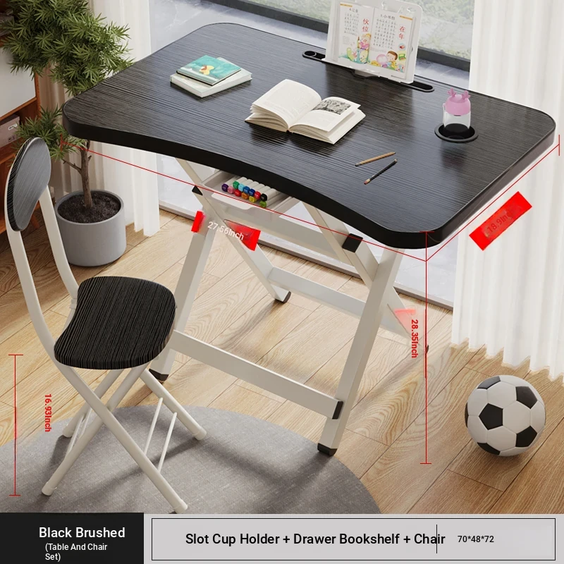 [Table and Chair combination] black brushed 70_48_72 (card slot cup holder + drawer bookshelf) stool height 16.93in