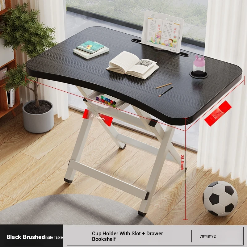 [Single Table] Black Wire-drawing 70_48_72 (Card Slot Cup Holder + Drawer Bookshelf)